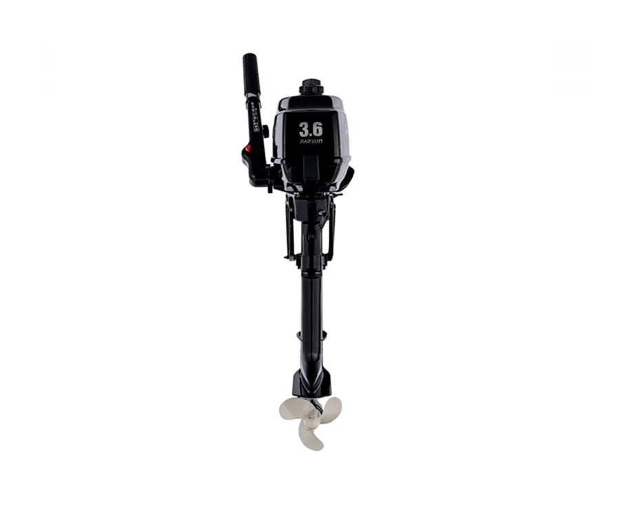Китайський 2-тактний двигун для човна Parsun 3.6 оснащено конструктивно міцним румпелем із ручкою управління газом. Підвісний двигун Parsun TC 3.6 BMS розраховано для встановлення на човни з висотою транця 381 мм. Капот мотора фіксується двома защібками, що забезпечує швидкий і зручний доступ до свічок, карбюратора та інших агрегатів силової частини. Вага мотора – 14,5 кг, що за наявності зручної і збалансованої ручки перенесення дає змогу просто та комфортно транспортувати і встановлювати його на транець човна. На моторі встановлений металевий гвинт з алюмінієвого сплаву.