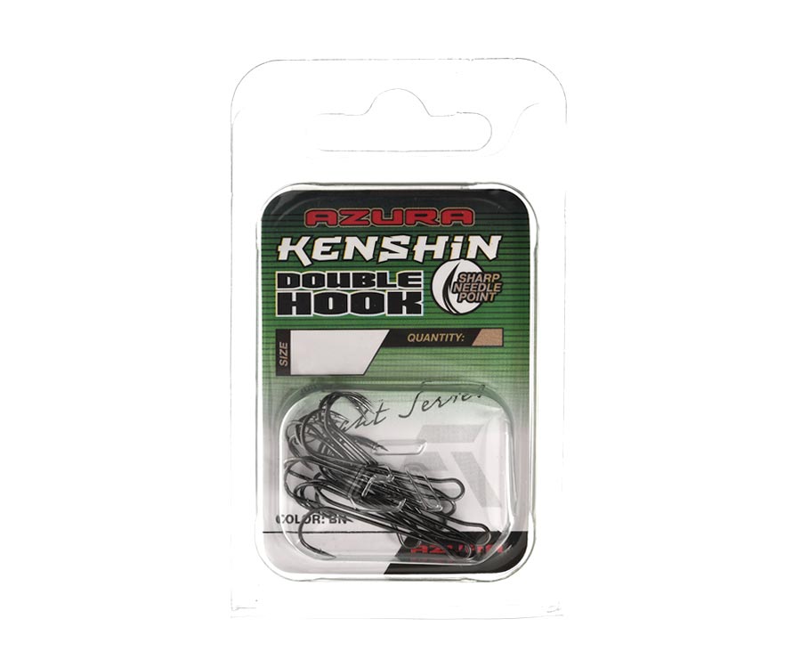Azura Kenshin Double Hook light series – серія двійних гачків найвищої якості, які призначено для використання в шарнірних монтажах. Незважаючи на те, що двійники Azura Kenshin Double Hook light series виготовлено з тонкого дроту, вони мають високу надійність і міцність на розгинання. Гачки мають подовжену цівку, кований піддів, надгостре жало з заточенням Needle Point, яке гарантує надійне засікання риби, що клюнула, та високоякісне антикорозійне покриття. Ідеально підходять для оснащення м'яких приманок різних типів. Широкий розмірний ряд Azura Kenshin Double Hook дає змогу підібрати оптимальний за розміром гачок практично до будь-якої м'якої приманки.
