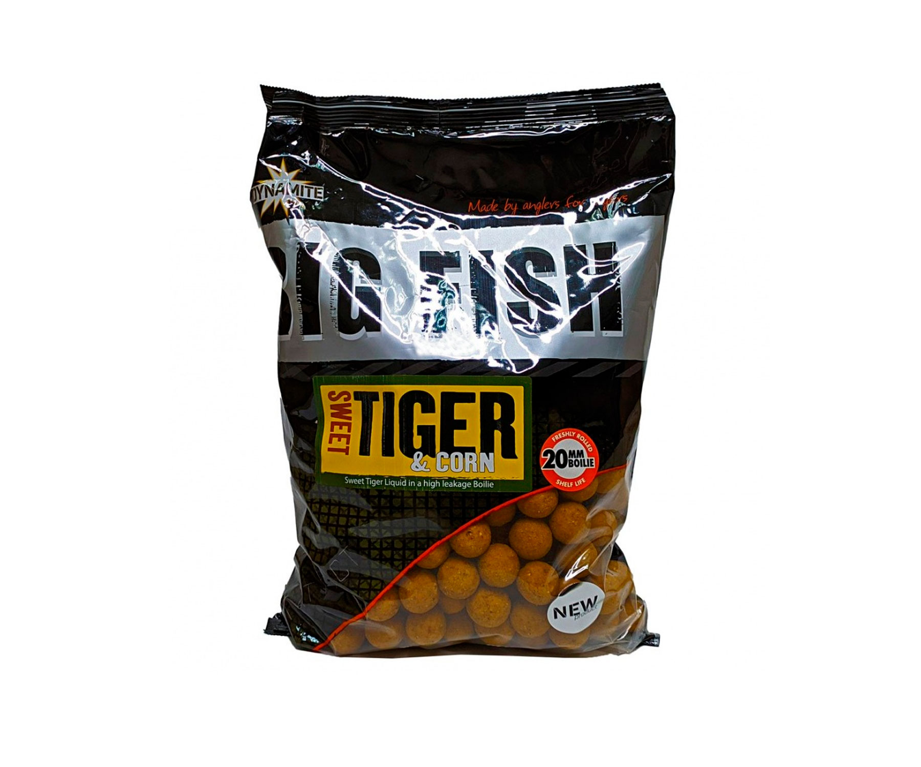 Бойли серії Big Fish зі смаком солодкого горіха і кукурудзи — Sweet Tiger & Corn! Ліквід Sweet Tiger став таким популярним, що на його базі вирішили створити бойли. Солодка кукурудза відмінно доповнила загальний смак, який став ще більш привабливим для коропа! Бойли серії Big Fish поживні та збалансовані, містять велику кількість протеїну, легко засвоюються, мають в складі риб’ячий жир і амінокислоти. Швидкий розпад для донесення смаку і залучення риби. Підходять для використання протягом всього року, але особливо ефективні в холодну пору. Мають необхідний коефіцієнт розчинності незалежно від температури води.