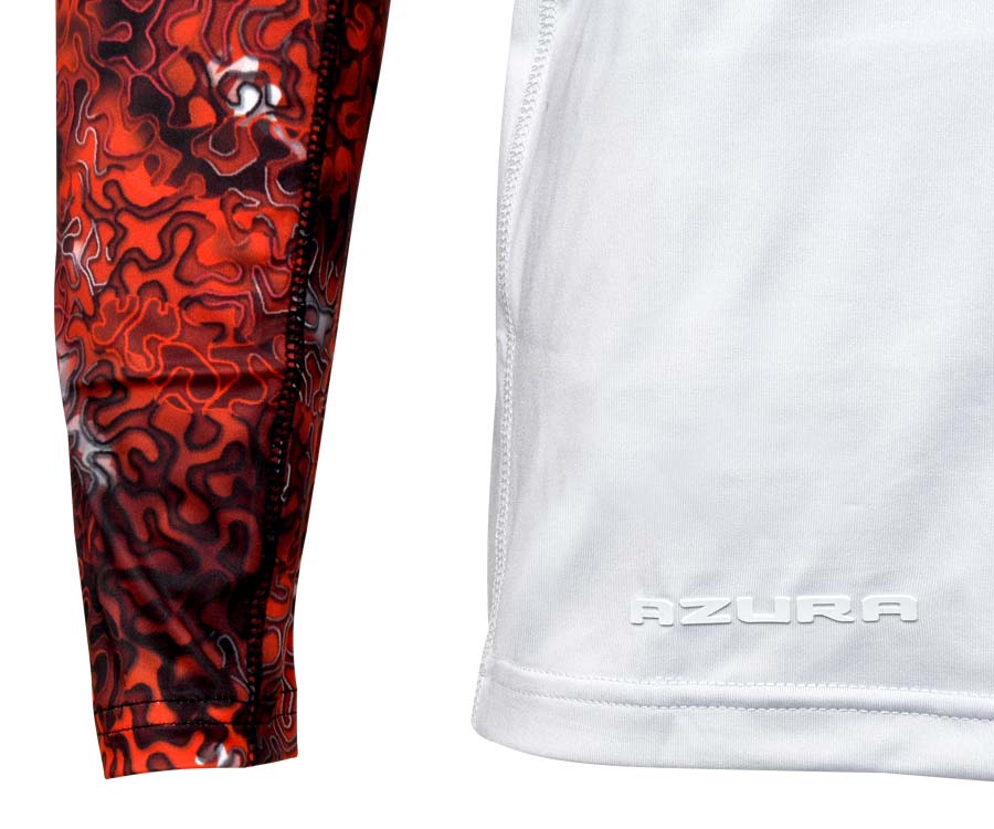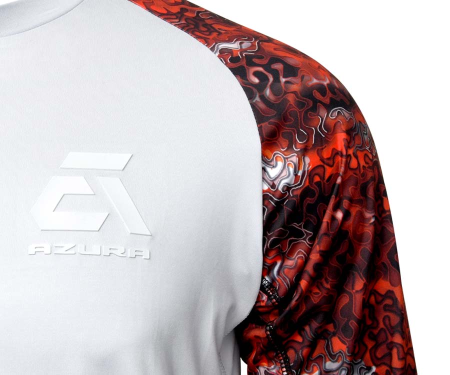 Azura Jersey A3 Gray-Red Camo – стильна й надзвичайно легка джерсі з довгими рукавами, яка захистить вас від палючих сонячних променів на риболовлі, під час активного відпочинку на природі та занять спортом. М'яка тонка тканина Azura Jersey A3 Gray-Red Camo зі «спортивного» поліестеру забезпечує комфортну температуру тіла при будь-якій спеці, а спеціальна технологія дає змогу волозі швидко всмоктуватися в тканину й безперешкодно виходити назовні. Пласкі шви запобігають натиранню тіла. Футболка швидко сохне, неприємні запахи нейтралізуються. Інноваційна структура тканини гарантує відмінну вентиляцію тіла та високий ступінь захисту від сонця – UPF 50. Azura Jersey A3 виконано в унікальному авторському дизайні з високим ступенем деталізації.