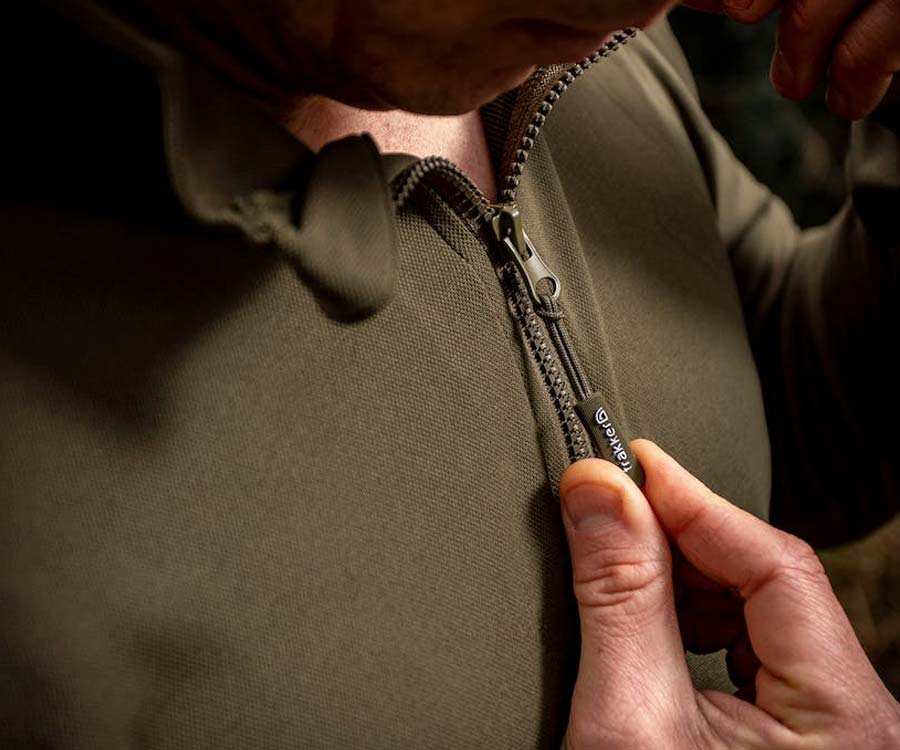 Реглан Trakker Half Zip Top UV Sun Protection — функціональний верхній одяг розроблений спеціально для захисту шкіри в літній час від шкідливого впливу ультрафіолетових променів. Антибактеріальне просочення бореться з неприємним запахами. Високотехнологічний матеріал швидко відводить піт від тіла на зовнішній шар і добре дихає. М'яка і еластична тканина швидко сохне. Анатомічний крій не сковує рухів, завдяки чому рибалка зможе закидати на дальні дистанції. Подовжена спинка з довгими рукавами і високим коміром забезпечують максимальний захист від ультрафіолету, відповідно до стандарту — EN13758-2 SPF 50+. У холодну пору року реглан Trakker Half Zip Top UV Sun Protection можна використовувати як додатковий натільний шар для утеплення.