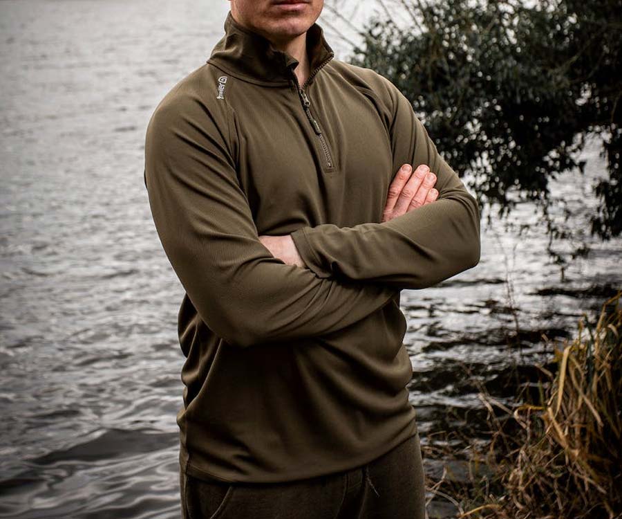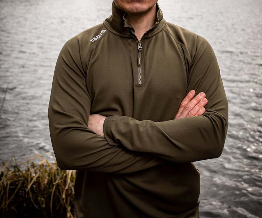 Реглан Trakker Half Zip Top UV Sun Protection — функціональний верхній одяг розроблений спеціально для захисту шкіри в літній час від шкідливого впливу ультрафіолетових променів. Антибактеріальне просочення бореться з неприємним запахами. Високотехнологічний матеріал швидко відводить піт від тіла на зовнішній шар і добре дихає. М'яка і еластична тканина швидко сохне. Анатомічний крій не сковує рухів, завдяки чому рибалка зможе закидати на дальні дистанції. Подовжена спинка з довгими рукавами і високим коміром забезпечують максимальний захист від ультрафіолету, відповідно до стандарту — EN13758-2 SPF 50+. У холодну пору року реглан Trakker Half Zip Top UV Sun Protection можна використовувати як додатковий натільний шар для утеплення.
