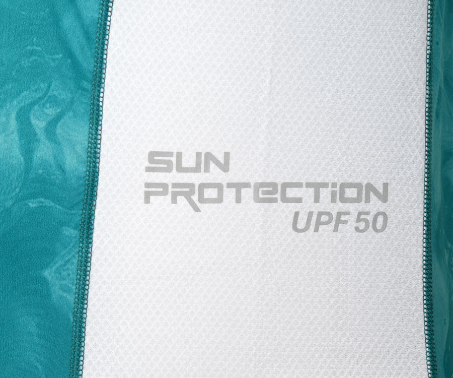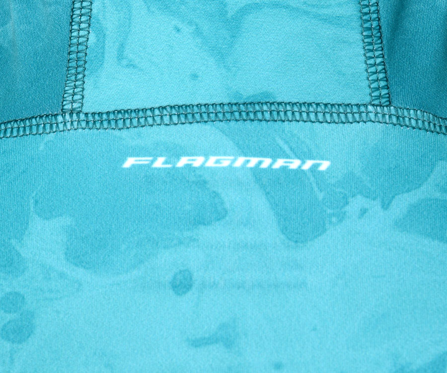 Flagman Jersey Turquoise Onyx – стильна та надзвичайно легка джерсі з довгими рукавами та капюшоном, що захистить вас від спекотних сонячних променів на риболовлі, під час занять спортом або відпочинку на природі. М'яка тонка тканина Flagman Jersey Turquoise Onyx зі «спортивного» поліестеру забезпечує комфортну температуру тіла за будь-якої спеки, а спеціальна технологія дає змогу волозі швидко поглинатися тканиною та безперешкодно виходити назовні. Джерсі Flagman Jersey Turquoise Onyx швидко сохне, неприємні запахи нейтралізуються. Пласкі шви виробу запобігають натиранню тіла. Інноваційна структура тканини забезпечує чудову вентиляцію тіла та високий ступінь захисту від сонця – UPF 50. Футболки з капюшоном Flagman Jersey Turquoise Onyx вироблено в сучасному дизайні та унікальних колірних рішеннях Flagman.