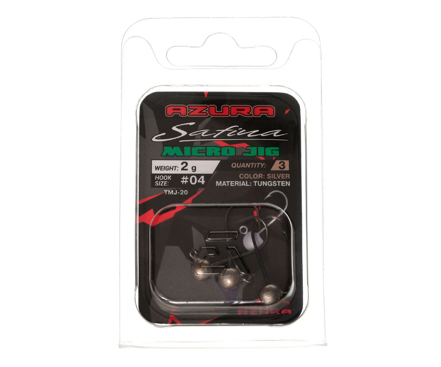 Azura Safina Tungsten Micro Jig – вольфрамова джиг-головка для мікроджигу. Цю джиг-головку було спеціально створено для любителів ловлі неохочої до клювань або запресованої риби найменшими приманками. Переваги: міцний гачок класичної форми, надгостре жало, здатне витримувати винятково велику кількість клювань і спеціальна форма тіла тягарця, яка дозволяє якомога гармонічніше поєднати джиг-головку Azura Safina Tungsten Micro Jig із приманкою, візуально утворивши з нею суцільний харчовий об’єкт.