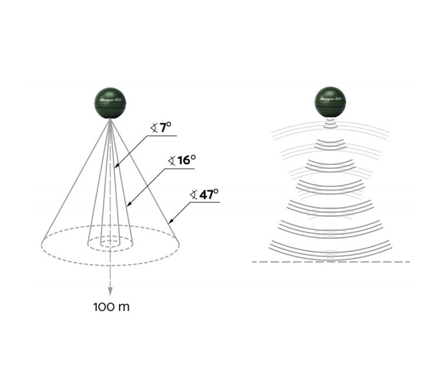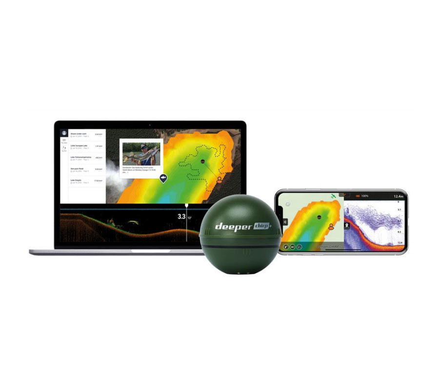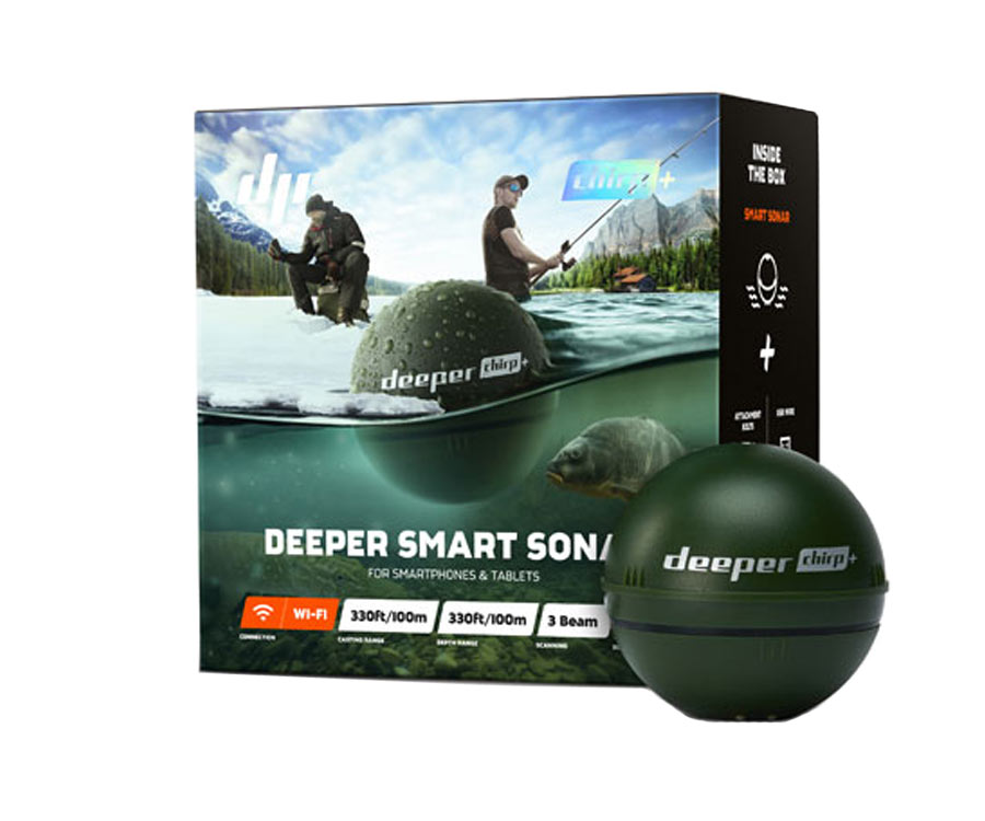 Ехолот Deeper CHIRP + - перший в світі бездротовий ехолот з GPS і WI-FI, що використовує технологію CHIRP. Сканує глибину до 100 м з високою точністю показників. Ехолот генерує свій Wi-Fi-сигнал; з'єднання залишається стабільним і надійним на відстані закидання до 100 м.