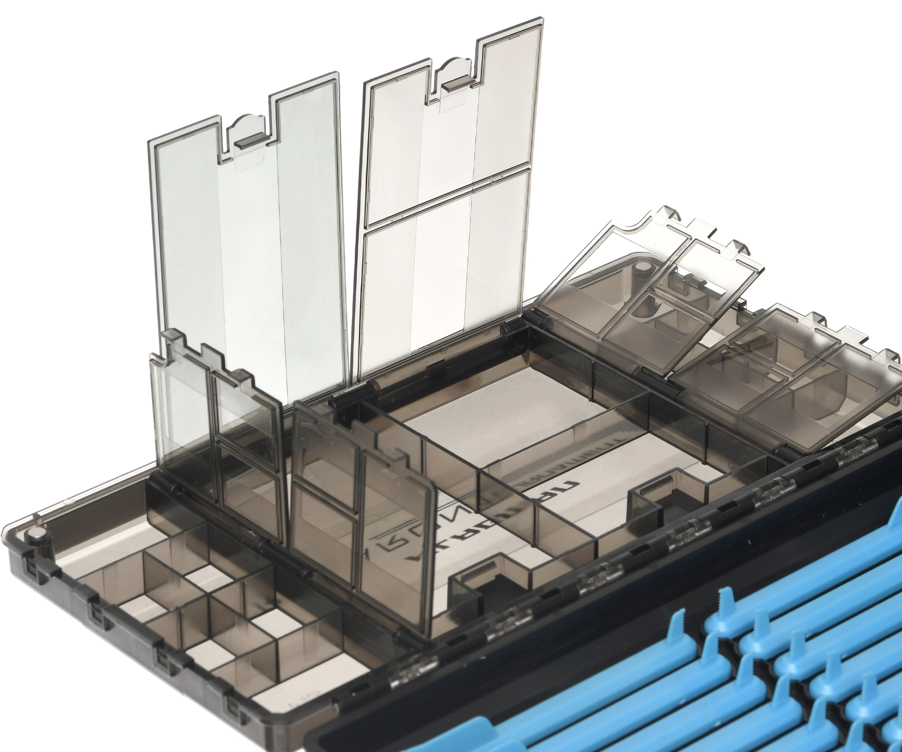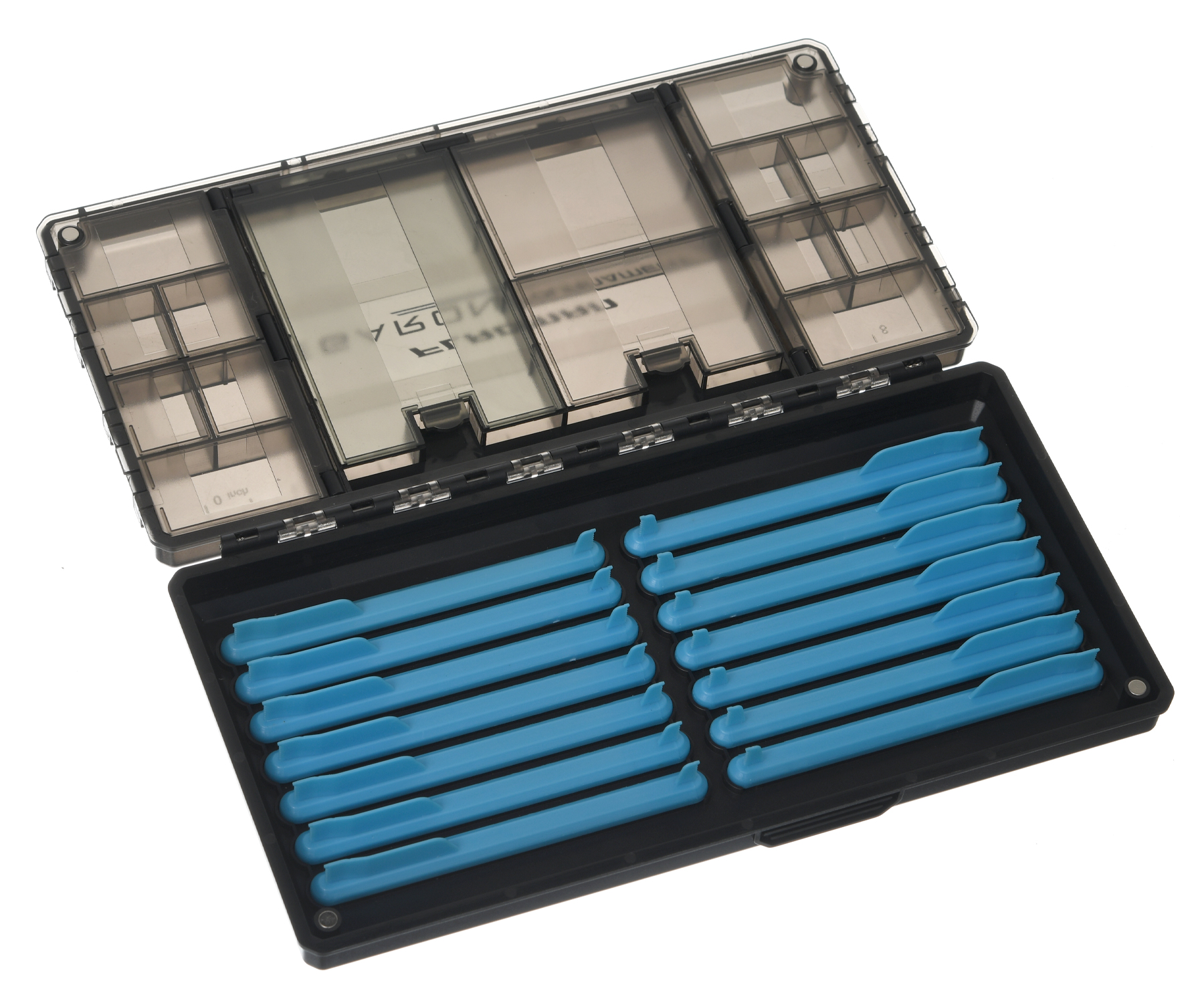 Коробка для аксесуарів Flagman Tregaron Accessory Box with Rig Sticks – зручний пластиковий кейс для зберігання і транспортування готових повідців, складових оснасток та риболовних аксесуарів. Коробка Flagman Tregaron Accessory Box with Rig Sticks оснащена 15 окремими відсіками різних розмірів із прозорими кришками для зберігання аксесуарів. Основне відділення має вбудовану магнітну дошку для розміщення 14 магнітних стіків, кожен із яких може містити до 8 готових повідців. Корпус коробки Tregaron Accessory Box with Rig Sticks виготовлено з легкого міцного пластику та оснащено магнітним замком із 4 магнітами для щільного закриття. Розміри (ДхШхВ): 248х130х38 мм. У комплекті 14х10 см (4") магнітних стіків.