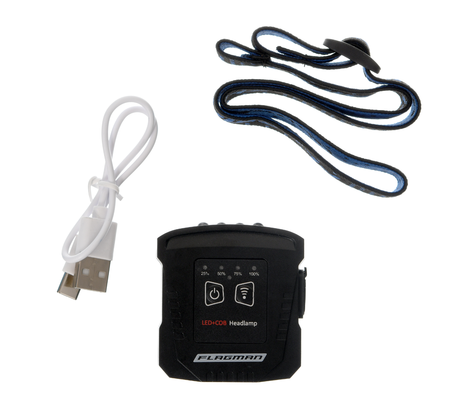 Flagman Hat Clip + Head Lamp 3+1 (sensor) – акумуляторний налобний ліхтар із кліпсою для кепки, сенсором і 3+1 режимами роботи. Налобний світлодіодний ліхтар Flagman F0020001 – це досить потужний і компактний освітлювальний прилад, призначений для використання на риболовлі, полюванні, у кемпінгу, туризмі, під час роботи в темних приміщеннях, а також в аварійних ситуаціях. Він обладнаний COB-світлодіодами + джерелом LED освітлення та має 4 режими роботи: яскравий, середній, економний і червоний блимаючий. Живлення налобного ліхтаря Flagman Hat Clip + Head Lamp 3+1 здійснюється від вбудованого Li-ion акумулятора. За невеликої ваги в 40 г час роботи виробу становить до 14 годин в економному режимі. Також у конструкції ліхтаря передбачено: дисплей рівня заряду батареї, сенсор керування, що допомагає вмикати/вимикати ліхтар і контролювати його режими жестами рук, а також кліпсу зі змінним кутом нахилу для кріплення на кепку.