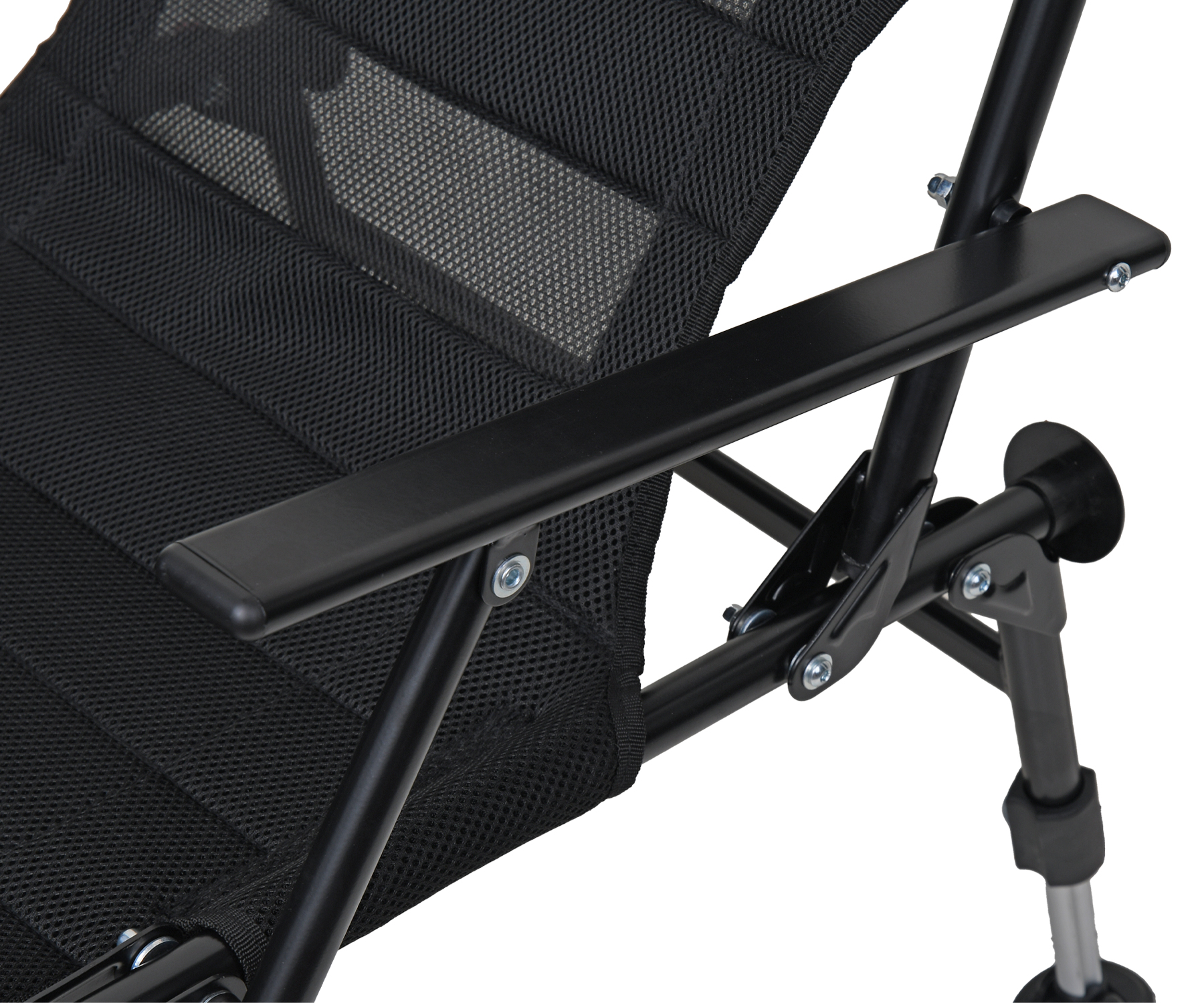 Flagman Pro Competition Feeder Chair Light – легке й дуже компактне в транспортуванні розкладне крісло з підлокітниками, яке спеціально розроблено для риболовлі та відпочинку. Крісло Flagman Pro Competition Feeder Chair Light легко і швидко встановлюється на будь-якій поверхні з нерівним рельєфом завдяки регульованим ніжкам із широкими грязьовими п'ятами на шарнірах, що запобігають його зануренню в м'який ґрунт. Завдяки надійній і міцній рамі з легкого алюмінієвого сплаву крісло без проблем витримує навантаження до 100 кг, користуючись популярністю в риболовів через свою функціональність, компактність і високий рівень комфорту. Оббивка спинки й сидіння вироблені зі зносостійкого водовідштовхувального матеріалу та мають сітчасті вставки для поліпшення вентиляції, що особливо корисно спекотними літніми днями. У процесі риболовлі ви можете вільно відкинутися на спинку, яку розміщено під оптимальним нахилом, що сприяє комфорту і тривалій невтомній ловлі. Flagman Pro Competition Feeder Chair Light – прекрасний вибір для тих рибалок, яким потрібно якісне, легке, компактне та одночасно бюджетне крісло для риболовлі та відпочинку на природі.