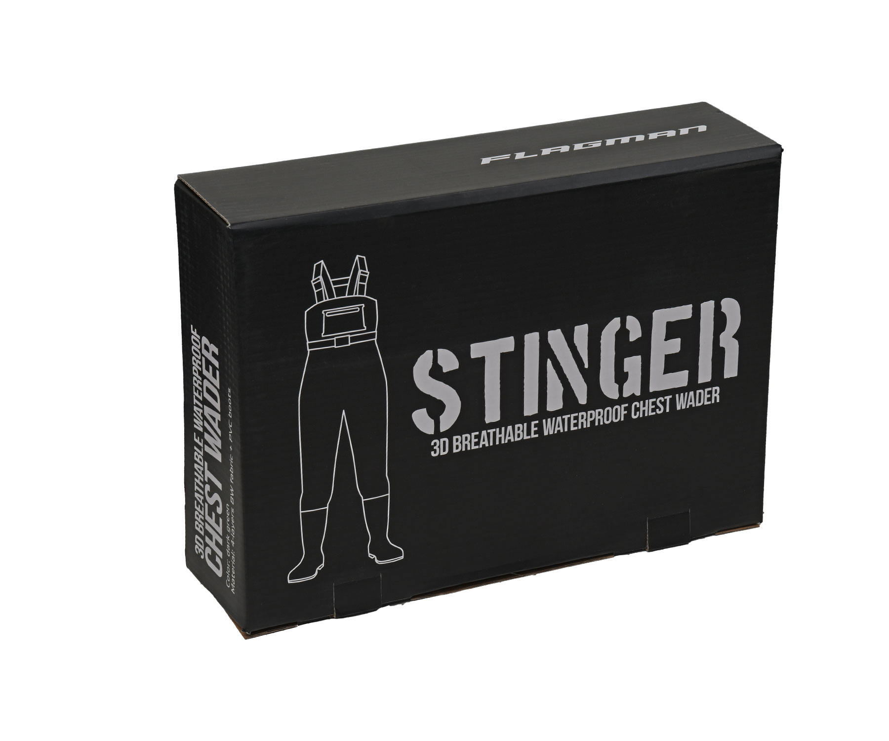 Забродний напівкомбінезон Flagman Stinger Breathable Waterproof Chest Wader –дихаючі вейдерси, які ідеально підійдуть для риболовлі в різноманітних погодних умовах. Цей забродний костюм виготовлено з міцного водонепроникного мембранного матеріалу з інтегрованими в нього чоботами. Водонепроникність матеріалу становить 25000 мм водяного стовпа, а дихаюча здатність – 3000 г/кв.м за 24 години. Міцні гумові чоботи мають зносостійку підошву з товстим глибоким протектором, який запобігає ковзанню на мулистому ґрунті. Усі шви виробу надійно проклеєно, що виключає будь-які протікання води та забезпечує його повну герметичність. Зручні широкі шлейки напівкомбінезона мають надійні пластикові застібки фастекс і регулюються по висоті відповідно до зросту рибалки. Крім того, у конструкції вейдерсів Flagman Stinger Breathable Waterproof Chest Wader передбачені шльовки під ремінь, регульований поясний ремінь із застібкою фастекс, а також містка нагрудна кишеня, що закривається на водонепроникну блискавку. Мембранні вейдерси Flagman Stinger Breathable Waterproof Chest дають змогу перебувати тривалий час у воді, не відчуваючи дискомфорту, не бояться низьких температур і стійкі до впливу ультрафіолетового випромінювання.