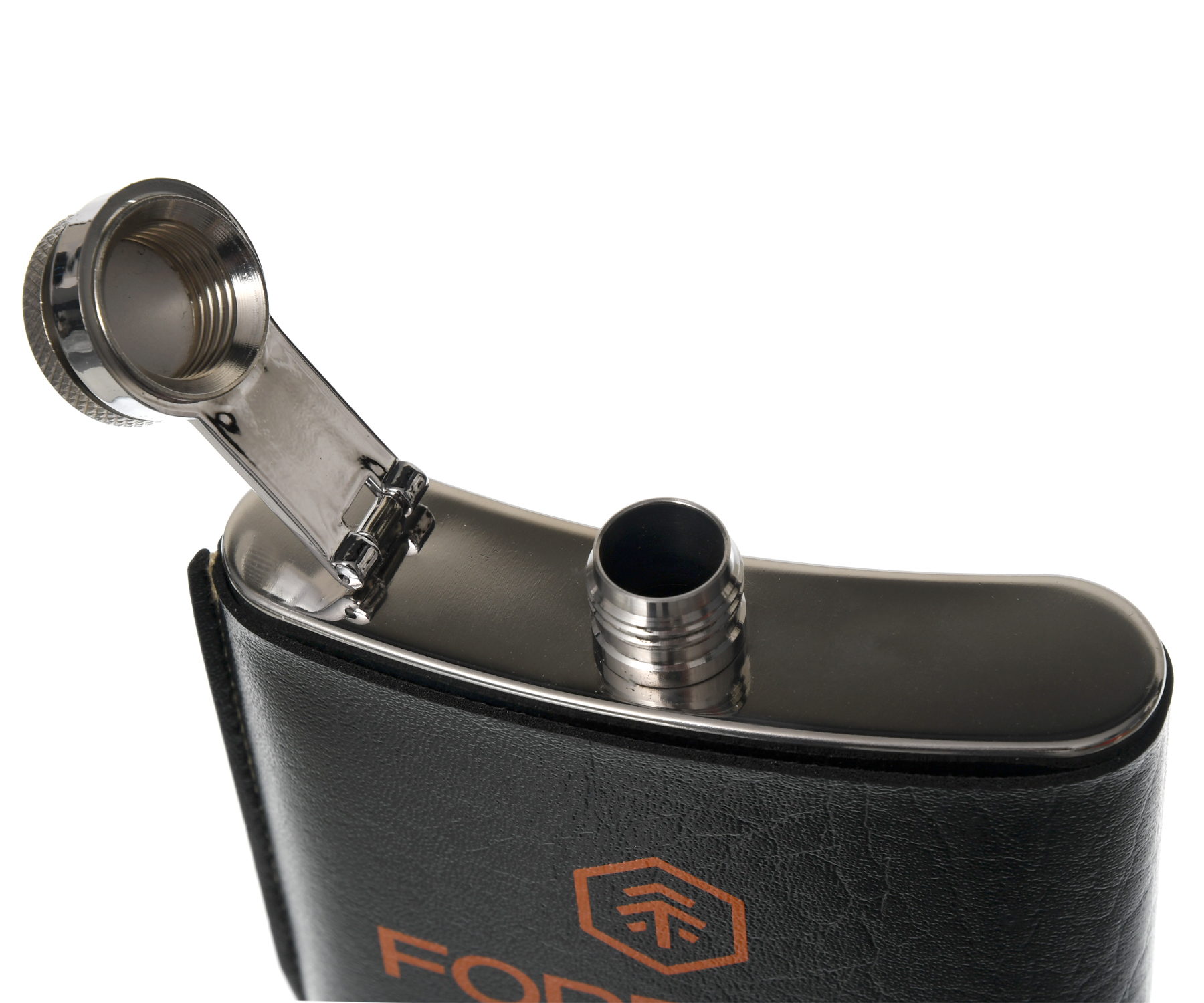 Forrest Flask – класична фляга оптимальної ємності та ергономічної форми. Модель виготовлено з харчової нержавіючої сталі, яка не тільки витримує будь-які удари, а і зберігає первинний смак та аромат напоїв. Зручний дизайн, оригінальне шкіряне покриття та високу якість виробу оцінять усі любителі одвічної класики. Невелика вага, витончена форма й компактний розмір дають змогу носити флягу в кишені куртки, сумки, рюкзака. Фляга Forrest Flask – чудовий варіант для пам'ятного подарунка й незамінний аксесуар для рибалок, мисливців, любителів кемпінгу та відпочинку на природі.
