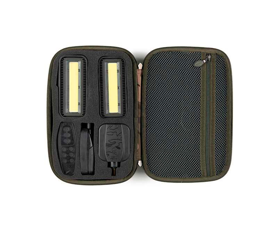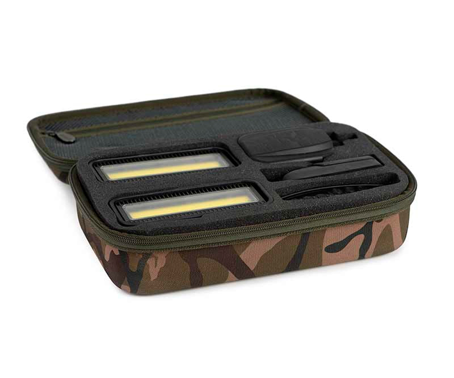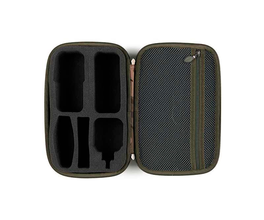Чохол Fox Camolite RX+ Security Case призначений для надійного захисту і транспортування пристроїв охоронної системи RX+. Він виконаний у фірмовому камуфляжному забарвленні Camolite і виготовлений з міцного поліестеру щільністю 500 ден. Усередині чохла передбачена формована пінна вставка, здатна вмістити до двох ліхтарів, трьох датчиків руху (PIR) і пульта дистанційного керування, забезпечуючи надійну фіксацію і захист обладнання. У кришці розташоване сітчасте відділення на блискавці для зберігання аксесуарів, як-от запасні батареї, інструменти або адаптери. Чохол оснащений міцними подвійними блискавками товщиною 8 мм, що забезпечує довговічність і надійність конструкції.