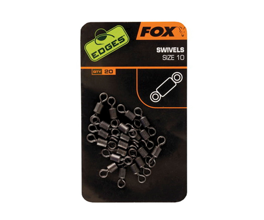 Вертлюги Fox Edges Standard Swivels призначені для з'єднання різних елементів оснащення, забезпечуючи вільне обертання і запобігаючи перекручуванню жилки. Вони мають матове антивідблискове покриття, що знижує їхню помітність у воді. Доступні в розмірах 7 і 10, кожен з яких упакований по 20 штук.