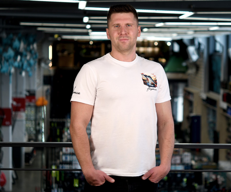Класична футболка Flagman із яскравим зображенням риби, яку ви полюбляєте ловити: окуня, коропа, плітки тощо. Це надзвичайно якісний виріб, що має округлий виріз, обстрочену горловину, короткі рукави, класичну посадку та супер-кльовий склад – 100% бавовна щільністю 160 г/м, дуже приємна до тіла. Футболку Flagman ми пропонуємо у 2 кольорах: чорному та білому. Для принтів застосовуємо технологію цифрового друку. За правильного догляду принт не втратить свого презентабельного вигляду та яскравості, а футболка буде дарувати радість вам та оточуючим довгий час.