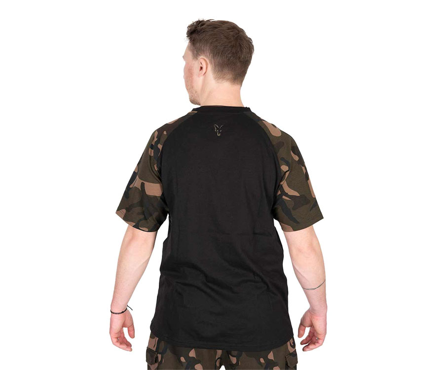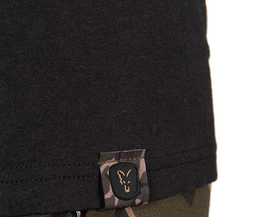 Футболка Fox Black/Camo Outline, елегантний стриманий чорний колір з логотипом лисиці у камуфляжному контурі та камуфляжними рукавами реглан. Футболки із 100% бавовни ідеально підходять для теплої погоди на березі. Функції: Чорна футболка з рукавами реглан камуфляжного кольору Fox