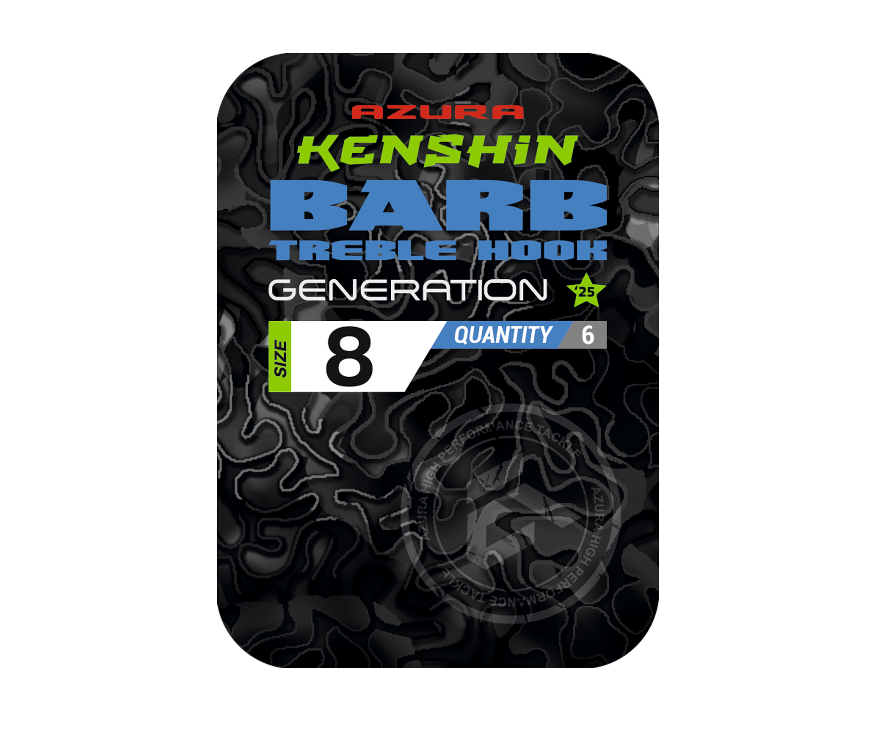 Azura Kenshin Barb Treble Hook special bent – серія високоякісних потрійних гачків із великим вушком і спеціальною формою вигину, які рекомендовано використовувати для додаткового обладнання шарнірних монтажів, оснащення воблерів, блешень тощо. Гачки виготовлено з високовуглецевого сталевого дроту. Вони мають високу надійність, а також, завдяки спеціальній формі вигину, підвищену міцність на розгинання. Для гачків Azura Kenshin Barb Treble Hook special bent характерні укорочена цівка, широкий хижий піддiв спеціальної форми, надгостре жало із заточуванням Needle Point, що гарантує надійне засікання риби, акуратна чіпка борідка та високоякісне антикорозійне покриття PTFE, що значно покращує проникаючу здатність гачків. Розмірний ряд Azura Kenshin Barb Treble Hook дає змогу підібрати оптимальний за розміром гачок практично під будь-яку приманку.