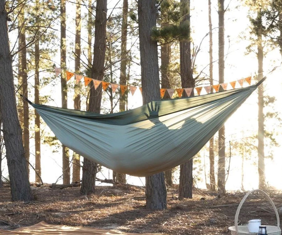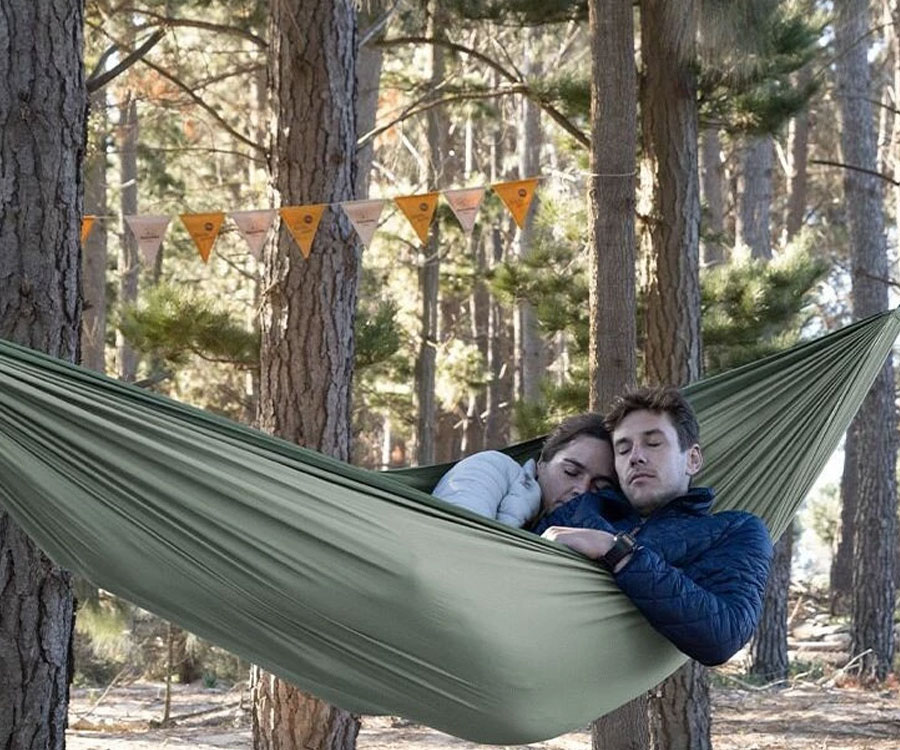 Гамак NH21DC011 має простий дизайн, але він максимально продуманий для більшої зручності розміщення двох осіб. Сам гамак має спеціальну форму, завдяки цьому людина утримується у певному положенні, виключаючи можливість перекидання. Гамак Ultralight Swing Double NH21DC011 від Naturehike забезпечить комфортний відпочинок на свіжому повітрі для всіх. Він розрахований на розміщення двох осіб. Завдяки зручній конструкції є можливість максимально зручного відпочинку. Важлива перевага моделі — міцність, в якості основи використовується поліестерова тканина. Цей гамак виготовлений з якісної тканини, яка приємна на дотик, досить м’яка. Під час перебування в гамаку виключається запарювання тіла, адже тканина пропускає повітря. Варто зазначити, що в комплекті є все необхідно для швидкого та надійного закріплення гамака. Двомісний гамак оливкового кольору, виготовлений з високоміцної поліефірної емалі із закріпленими під тиском кріпленнями. Важлива перевага — висока зносостійкість. В ньому може розташовуватися декілька дітей, або двоє дорослих осіб вагою до 200 кг. Гамак рекомендується підвішувати на прольоті близько 3 м. В якості точок кріплення можна використовувати два дерева. Закріпити на них гамак можливо за допомогою мотузок та карабінів, що додаються. Відстань над ґрунтом становить 50 см. Такий гамак можна взяти у похід, він прекрасно підійде для туризму, кемпінгу, велотуризму.