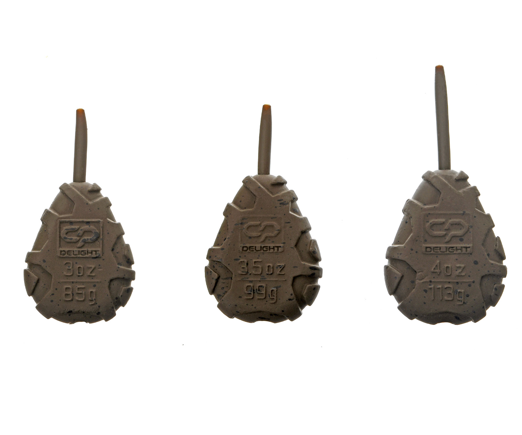 Грузила Carp Pro Delight In-Line Flat Pear мають форму пласкої груші з унікальним рельєфним дизайном від Carp Pro. Вони чудово підходять для ловлі на будь-якому дні, а також вирізняються надійною фіксацією оснастки на звалах, брівках і підводних схилах. Carp Pro Delight In-Line Flat Pear є ідеальним рішенням під час ловлі в замулених місцях, оскільки завдяки дуже широкій і пласкій формі не провалюються глибоко в мул, на відміну від грузил інших виробників. Однією з ключових особливостей грузил Delight In-Line Flat Pear також є те, що їх основна вага сконцентрована в передній частині, завдяки чому на висоті не тільки їхні польотні якості, але й найвищий відсоток самозасікання риби. Carp Pro Delight In-Line Flat Pear обладнані надійною гумовою вставкою. Вони чудово пролиті та збалансовані, що забезпечує відмінну стабілізацію в польоті. Спеціальне антивідблискове полімерне покриття має приємну тактильну структуру й ідеально маскує грузила Carp Pro Delight на дні водойми та між водоростей.