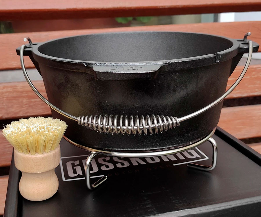Набір для запікання казан+кришка+пательня, підйомник 2в1 Gusskönig 9л. Набір включає зручну підставку та спіральну ручку, яка легко лягає в руку. У комплекті також є щітка для чищення, з якою ви зможете легко видалити стійкі залишки. 100% зручність – чавунний казан був розробленій німецькими інженерами з акцентом на комфорт у використанні.