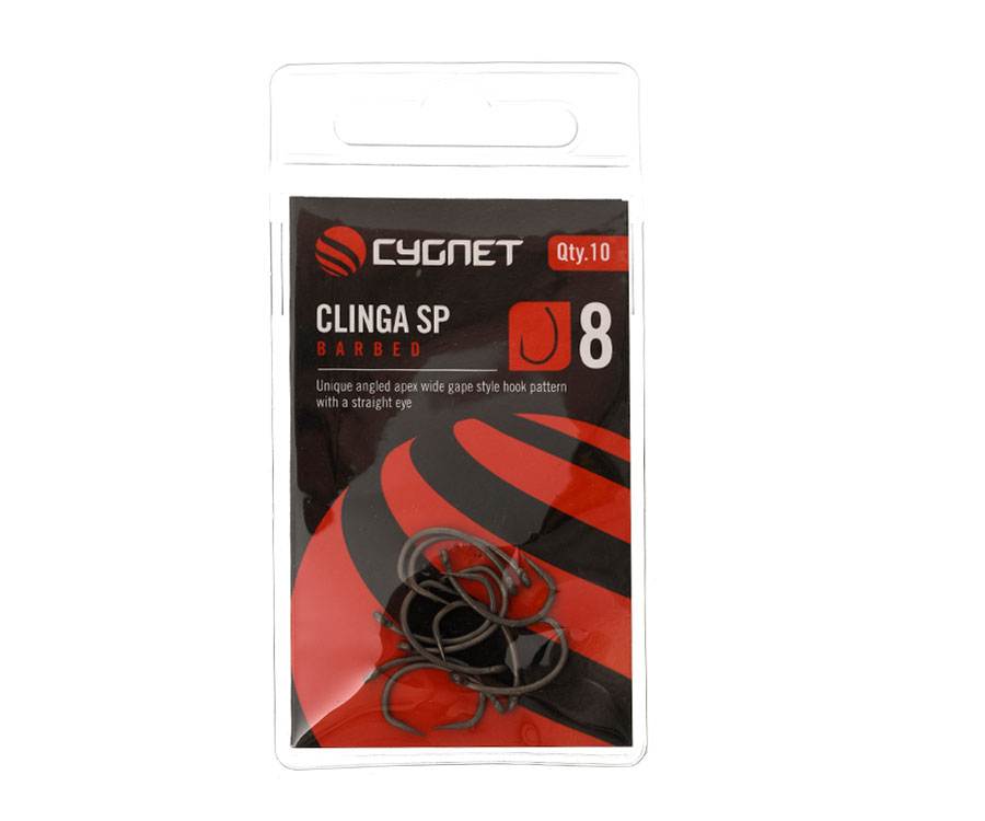 Гачки Cygnet Clinga SP з хімічним заточуванням жала мають унікальну вигнуту цівку з широким кованим піддівом і прямим вушком. Cygnet Clinga SP Hooks виготовлено з міцного сталевого дроту, вони мають антивідблискове захисне покриття PTFE, що робить їх довговічними, зручними у використанні, легко проникаючими та максимально непомітними для риби.