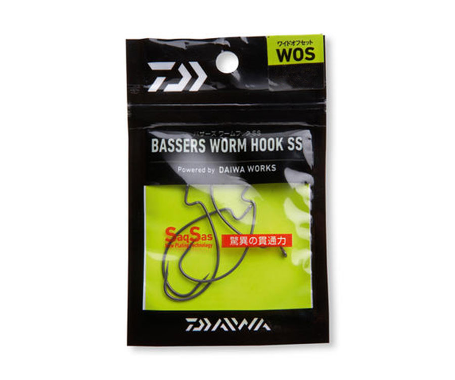 Daiwa Bassers Worm Hook WOS – серія офсетних гачків з широким піддівом, які підходять для приманок різних пропорцій. Гачки характеризуються закругленим, трохи скошеним загином, найгострішим жалом, класичною Z-подібною сходинкою та дуже стійким захисним покриттям Black Chrome. Bassers Worm Hook WOS ідеальні для використання з невеликими та середніми об'ємними джиговими принадами. Це міцні універсальні гачки для лову великої щуки та судака. Використання при виробництві Daiwa Bassers Worm Hook технології SaqSas робить ці гачки неймовірно гострими.