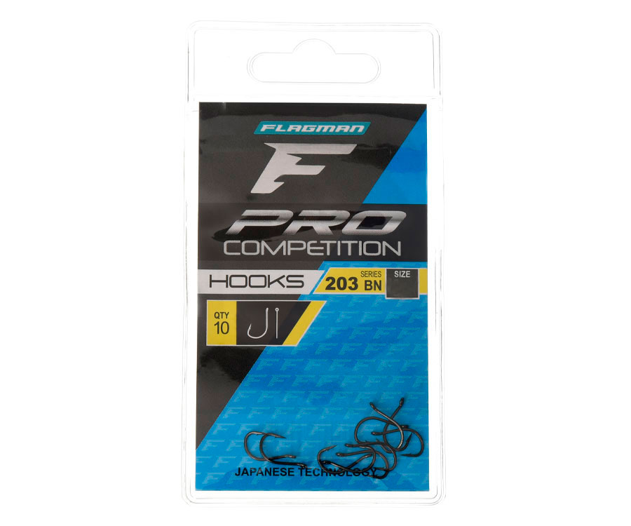 Гачки Flagman Hook Pro Competition 203 – новинка 2024 року, серія достатньо потужних універсальних гачків із вушком, вироблених за японською технологією і призначених для спортивної та аматорської риболовлі. Гачки Pro Competition 203 мають класичний округлий вигин, широкий кований піддів, стандартної довжини цівку з кільцем для прив'язування жилки та пряме гостре жало з лазерним заточуванням. Гачки серії Flagman Hook Pro Competition 203 вирізняються міцністю, надійністю, відмінною чіпкістю, чудовою реалізацією клювань та тривалий час зберігають первинну гостроту жала. Їх виготовлено з високовуглецевого сталевого дроту з якісним антикорозійним покриттям Black Nickel. Вони ідеально підійдуть як для коропової та фідерної, так і для поплавцевої ловлі риби на об'ємні насадки рослинного і тваринного походження. Гострозаточене жало та чіпка борідка гарантують ефективне підсікання і впевнене утримання трофея. Залежно від величини ймовірної здобичі та оснастки, ви зможете легко підібрати гачки необхідного розміру. Доступні в розмірах № 4, 6, 8, 10, 12, 14. В упаковці: 10 шт.