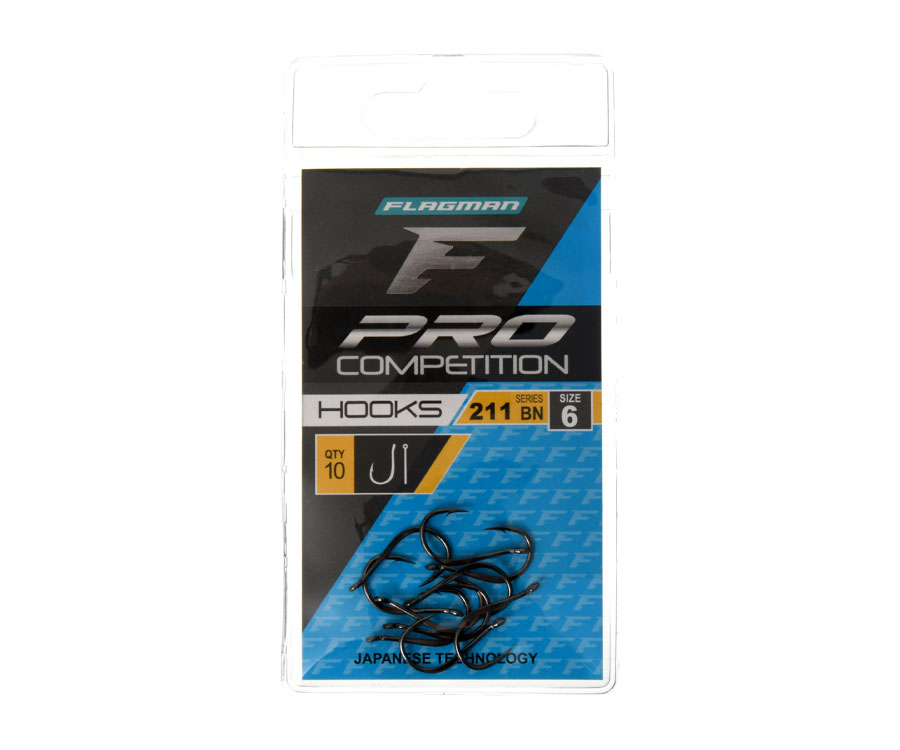 Гачки Flagman Hook Pro Competition 211 – новинка 2024 року, серія потужних універсальних гачків із вушком, вироблених за японською технологією і призначених для спортивної та аматорської риболовлі. Гачки Pro Competition 211 мають класичний округлий вигин, широкий кований піддів, середньої довжини цівку з відігнутим назовні кільцем для прив'язування жилки та загнуте всередину жало з лазерним заточуванням. Гачки серії Flagman Hook Pro Competition 211 вирізняються міцністю, надійністю, відмінною чіпкістю, максимальною реалізацією клювань та тривалий час зберігають первинну гостроту жала. Їх виготовлено з високовуглецевого сталевого дроту з якісним антикорозійним покриттям Black Nickel. Вони ідеально підійдуть як для фідерної та поплавцевої, так і для коропової ловлі риби на об'ємні насадки рослинного і тваринного походження. Гострозаточене жало та чіпка борідка гарантують ефективне підсікання і впевнене утримання трофея. Залежно від величини ймовірної здобичі та оснастки, ви зможете легко підібрати гачки необхідного розміру. Доступні в розмірах № 4, 6, 8, 10. В упаковці: 10 шт.