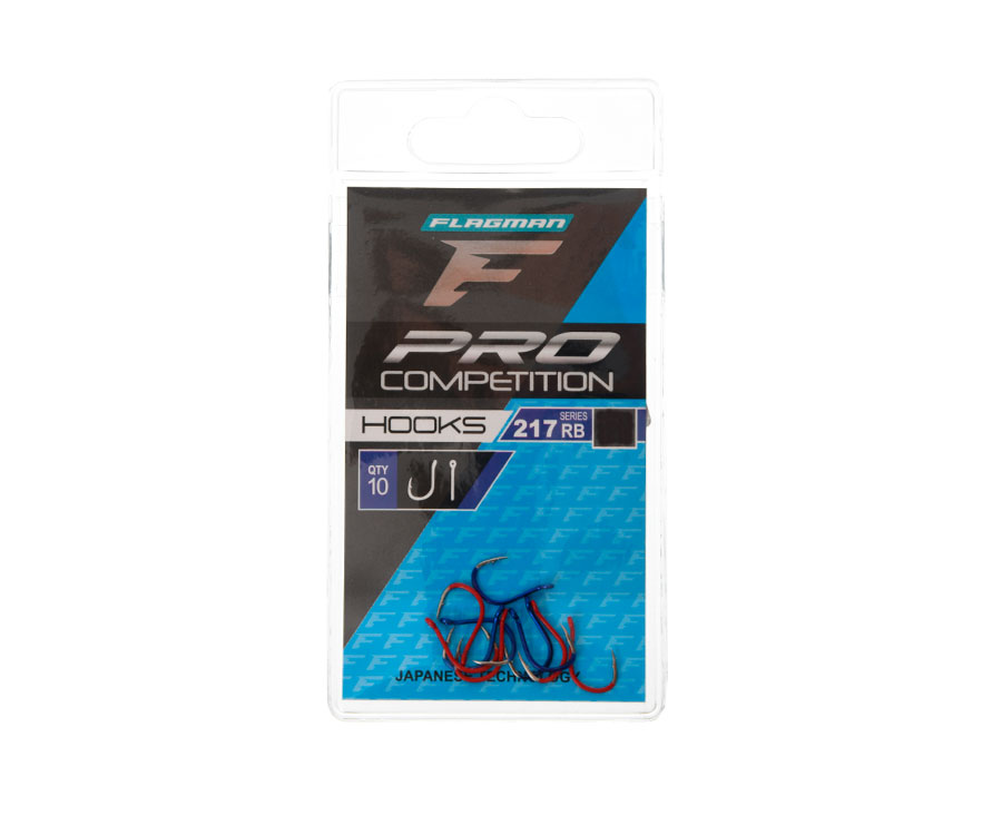 Гачки Flagman Hook Pro Competition 217 Red and Blue – новинка 2024 року, серія потужних універсальних гачків із вушком, виготовлених за японською технологією та призначених для спортивної та аматорської ловлі коропа. Гачки Pro Competition 217 мають округлий вигин, широкий кований піддів, коротку цівку з відігнутим назовні кільцем для прив'язування жилки та загнуте всередину жало з лазерним заточуванням. Гачки серії Flagman Hook Pro Competition 217 вирізняються міцністю, надійністю, відмінною чіпкістю, максимальною реалізацією клювань та тривалий час зберігають первинну гостроту жала. Їх виготовлено з високовуглецевого сталевого дроту з якісним антикорозійним покриттям червоного та синього кольору. Вони ідеально підійдуть як для волосяних оснасток у короповій ловлі, так і для фідерної ловлі на об'ємні насадки рослинного та тваринного походження. Гострозаточене жало та чіпка борідка гарантують ефективне підсікання і впевнене утримання трофея. Залежно від величини ймовірної здобичі та оснастки, ви зможете легко підібрати гачки необхідного розміру. Доступні в розмірах № 8, 10, 12. В упаковці: 10 штук – 5 червоних і 5 синіх гачків.