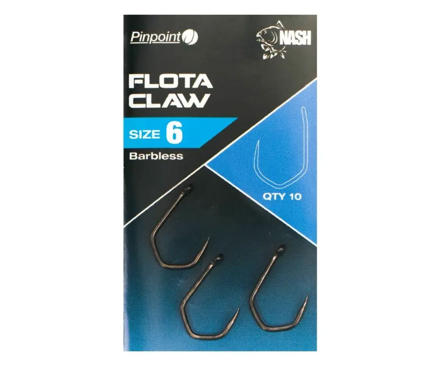 Гачок Nash flota Claw — полегшена серія гачків від фірми Nash. Дана серія розроблена спеціально для ловлі на тонучі, а також повільно тонучі насадки. Flota Claw, на відміну від серії Claw, має меншу вагу, внаслідок чого краще розгортається в роті у риби. Але незважаючи на легкість самого гачка, він, як і раніше, дуже міцний і надійний. Беручи цей гачок із собою на риболовлю, ви можете бути в ньому впевнені на всі 100%. Радикально нова форма гачка дозволяє ловити різні види оснасток і насадок. Дуже гостре заточення дозволить зловити того самого трофейного коропа.