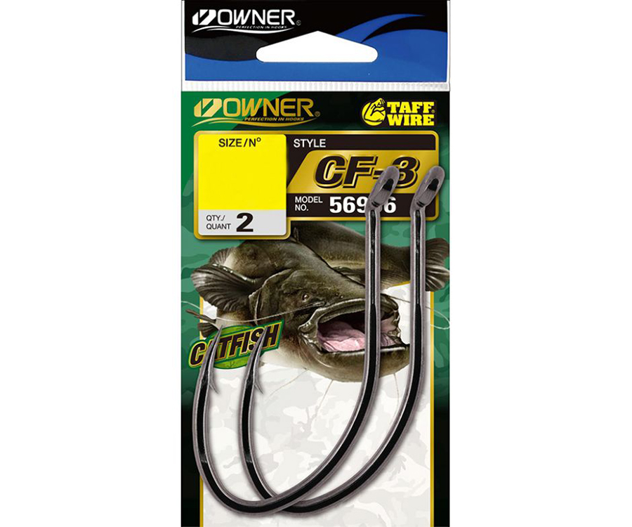 Owner Catfish 56966 (CF-3) – серія потужних гачків для ловлі сома та іншої трофейної риби. Гачки виготовлено з дуже міцного сталевого сплаву. Діаметр дроту підібрано так, аби зробити гачок якомога міцним і водночас легким. Гачки Owner 56966 характеризують широким напівокруглим вигином, кованим піддівом, загнутим у бік цівки жалом, нормальної довжини цівкою з відігнутим назовні кільцем для прив'язування та антикорозійним покриттям Black Chrome. Надгостре жало Owner Catfish CF-3, що зберігає заточування навіть у найскладніших умовах, і міцна борідка гарантують ефективне підсікання та впевнене утримання будь-якого трофея.