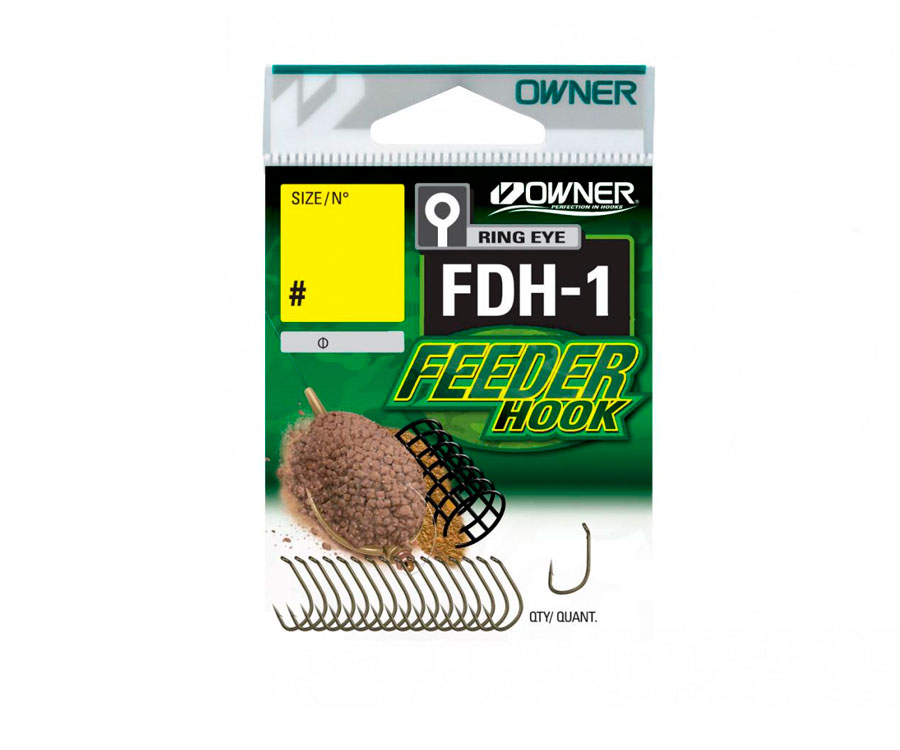 Owner Feeder Hook FDH-1 Amano Tenkara With Eye 56941 – новітня серія потужних і міцних гачків, виготовлених із високовуглецевої сталі, які розроблено для фідерної ловлі великої сильної риби. Гачки Owner 56941 мають широкий вигин wide gape, кований піддів, вкорочену цівку із загнутим всередину кільцем для прив'язування, пряме гостре жало із заточуванням Super Needle Point і захисне покриття коричневого кольору. Owner Feeder Hook FDH-1 – чудова модель для фідерної ловлі коропа і всіх видів білої риби на насадки як тваринного, так і рослинного походження. Це прекрасний вибір для фідерної ловлі з використанням невеликих поп-апів на волосі або ж для насаджування на гачок, наприклад, солодкої кукурудзи та інших натуральних насадок. Загнуте всередину вушко дає змогу розташувати гачок у потрібний спосіб відносно повідця та насадки, а надгостре жало й акуратна борідка гарантують ефективне підсікання та надійне утримання трофея, з мінімальним нанесенням йому пошкоджень. Розмірний ряд гачків у серії Owner Feeder Hook FDH-1 Amano Tenkara – від №14 до №6.