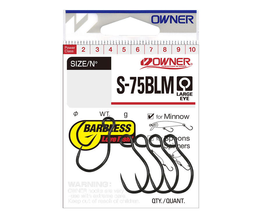 Гачки Owner S-75BLM 51626 для оснащення блешень. Гачки відрізняє підвищена міцність і надійність при виведенні риби. Характеризуються цівкою нормальної довжини, круглим загином, найгострішим жалом з борідкою і стійким до корозії покриттям Black Chrome.