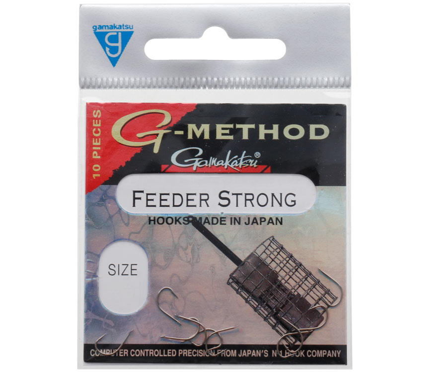 Gamakatsu Feeder Strong B – серія надійних гачків, які виготовлено із високоякісної вуглецевої сталі. Гачки Feeder Strong B мають класичний округлий вигин, кований піддів, середньої довжини цівку з лопаткою для прив’язування й захисне покриття сірого кольору. Найгостріше жало гачків Gamakatsu Feeder Strong B з чіпкою борідкою легко проникає крізь костисті покриви рота риб, забезпечуючи продуктивне підсікання й надійне утримання здобичі.