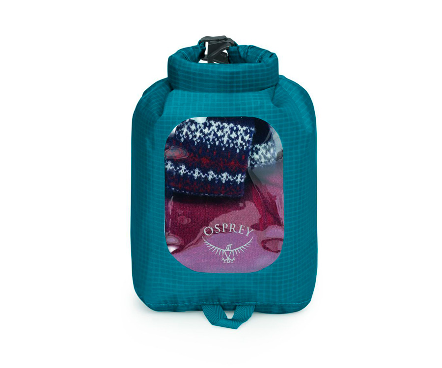 Гермомішок Osprey DrySack w/Window waterfront blue – нова лінійка гермомішків від компанії Osprey. Завжди краще упакувати одяг і цінні речі в гермомішок, який слугуватиме роками, ніж користуватися ненадійними поліетиленовими пакетами. Головною особливістю цього Osprey DrySack є прозоре віконечко. Тепер ви зможете точно переконатися, де розташовані потрібні вам речі. Гермомішок DrySack w/Window waterfront blue виготовлено із силіконізованого нейлону Ripstop, що забезпечує надійний захист вашим речам, хоч би яким мокрим не був рюкзак. Модель має водонепроникну застібку, герметичні шви та форму прямокутника. Таке рішення робить пакування вашого одягу більш ефективним, а за правильного пакування мішок не падає.