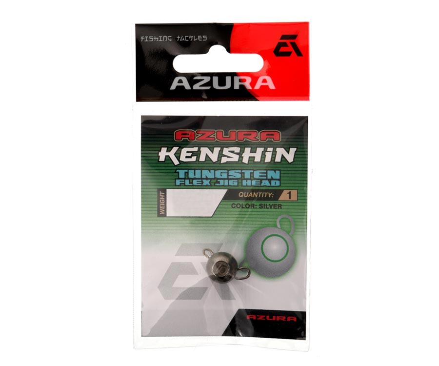 Azura Kenshin Tungsten Flex Jig Head – вольфрамове «вухасте» грузило зі знімною скобою з нержавіючої сталі. Вирізняється високою якістю виготовлення, чітким маркуванням кожного грузила, вивіреною формою вигину скоби. Вольфрам має більшу щільність, ніж сплави зі свинцю, тому грузила з нього виходять меншого розміру. А це позитивно позначається на дальності й точності закидання. Крім того, вольфрамові грузила більш «дзвінкі» й помітно підвищують чутливість снасті: при проведенні простіше визначити характер донного ґрунту, легше відрізнити обережні клювання від контакту з водоростями та корчами. «Чебурашки» Azura Kenshin Tungsten Flex Jig Head мають ще одну перевагу – знімну скобу з жорсткого нержавіючого дроту, завдяки чому гачок на них встановлюється без додаткових елементів оснастки, таких як заводні кільця. Приманку в процесі ловлі можна швидко змінити разом із гачком, не змінюючи грузила. Kenshin Tungsten Flex Jig Head виготовляють у широкому діапазоні ваги й розмірів.