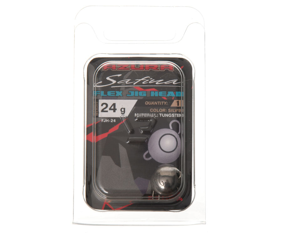 Azura Safina Tungsten Flex Jig Head – серія вольфрамових «вухастих» грузил зі знімною скобою з нержавіючої сталі, які вирізняються високою якістю виготовлення, чітким маркуванням, вивіреною формою вигину скоби. Вольфрам має більшу щільність, ніж сплави зі свинцю, тому грузила з нього виходять меншого розміру, що позитивно позначається на дальності й точності закидання. Крім того, вольфрамові грузила більш «дзвінкі» й помітно підвищують чутливість снасті: під час проведення простіше визначити характер донного ґрунту, легше відрізнити обережні клювання від контакту з водоростями та корчами. «Чебурашки» Azura Safina Tungsten Flex Jig Head мають ще одну перевагу – знімну скобу із жорсткого нержавіючого дроту, завдяки чому гачок на них встановлюється без додаткових елементів та заводних кілець. Приманку в процесі ловлі можна швидко змінити разом із гачком, не змінюючи грузила. Safina Tungsten Flex Jig Head виготовляють у широкому діапазоні ваги та розмірів.