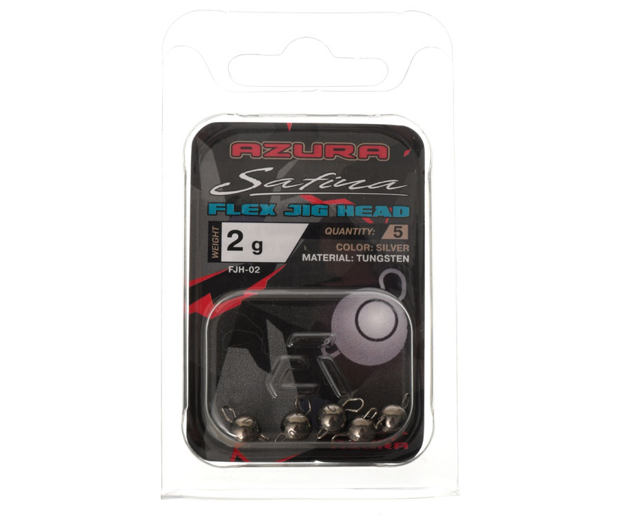 Azura Safina Tungsten Flex Jig Head – серія вольфрамових «вухастих» грузил зі знімною скобою з нержавіючої сталі, які вирізняються високою якістю виготовлення, чітким маркуванням, вивіреною формою вигину скоби. Вольфрам має більшу щільність, ніж сплави зі свинцю, тому грузила з нього виходять меншого розміру, що позитивно позначається на дальності й точності закидання. Крім того, вольфрамові грузила більш «дзвінкі» й помітно підвищують чутливість снасті: під час проведення простіше визначити характер донного ґрунту, легше відрізнити обережні клювання від контакту з водоростями та корчами. «Чебурашки» Azura Safina Tungsten Flex Jig Head мають ще одну перевагу – знімну скобу із жорсткого нержавіючого дроту, завдяки чому гачок на них встановлюється без додаткових елементів та заводних кілець. Приманку в процесі ловлі можна швидко змінити разом із гачком, не змінюючи грузила. Safina Tungsten Flex Jig Head виготовляють у широкому діапазоні ваги та розмірів.