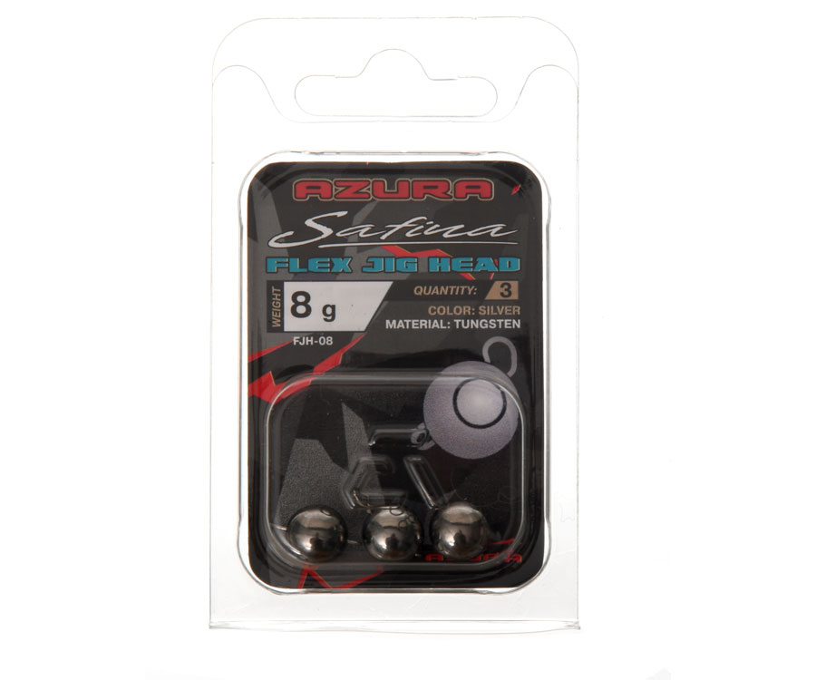 Azura Safina Tungsten Flex Jig Head – серія вольфрамових «вухастих» грузил зі знімною скобою з нержавіючої сталі, які вирізняються високою якістю виготовлення, чітким маркуванням, вивіреною формою вигину скоби. Вольфрам має більшу щільність, ніж сплави зі свинцю, тому грузила з нього виходять меншого розміру, що позитивно позначається на дальності й точності закидання. Крім того, вольфрамові грузила більш «дзвінкі» й помітно підвищують чутливість снасті: під час проведення простіше визначити характер донного ґрунту, легше відрізнити обережні клювання від контакту з водоростями та корчами. «Чебурашки» Azura Safina Tungsten Flex Jig Head мають ще одну перевагу – знімну скобу із жорсткого нержавіючого дроту, завдяки чому гачок на них встановлюється без додаткових елементів та заводних кілець. Приманку в процесі ловлі можна швидко змінити разом із гачком, не змінюючи грузила. Safina Tungsten Flex Jig Head виготовляють у широкому діапазоні ваги та розмірів.