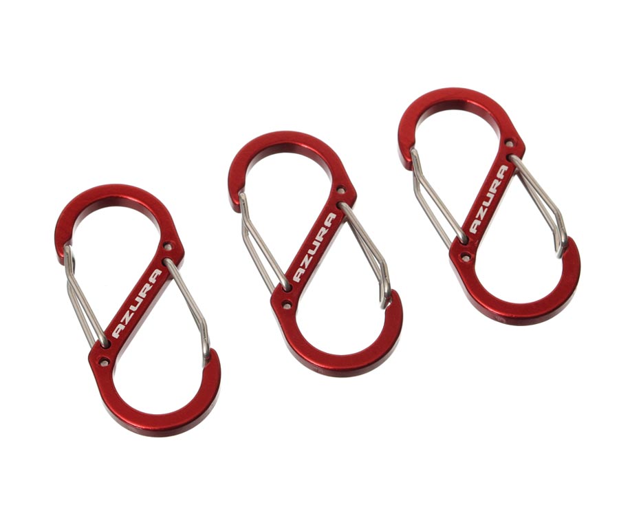 Azura Safina Carbine-S – алюмінієвий S-подібний карабін із двома підпружиненими фіксаторами-защібками, який призначено для кріплення неважких предметів. Карабін Azura Safina Carbine-S являє собою плаский алюмінієвий корпус у вигляді англійської літери S, по обидва боки якого розміщено дротяні фіксатори з нержавіючої сталі. Фіксатори працюють незалежно один від одного, що значно розширює сферу застосування карабіна і зручність користування. Ви можете прикріпити до нього ключі та застосовувати як брелок, а можете пристебнути на штани, жилет, рибальську сумку або рюкзак і використовувати для закріплення необхідних під час риболовлі інструментів та аксесуарів. Azura Safina Carbine-S легкий, компактний, досить міцний, не деформується і прослужить вам тривалий час. Розміри: 50х23 мм. У комплекті: 3 шт. Колір: червоний.