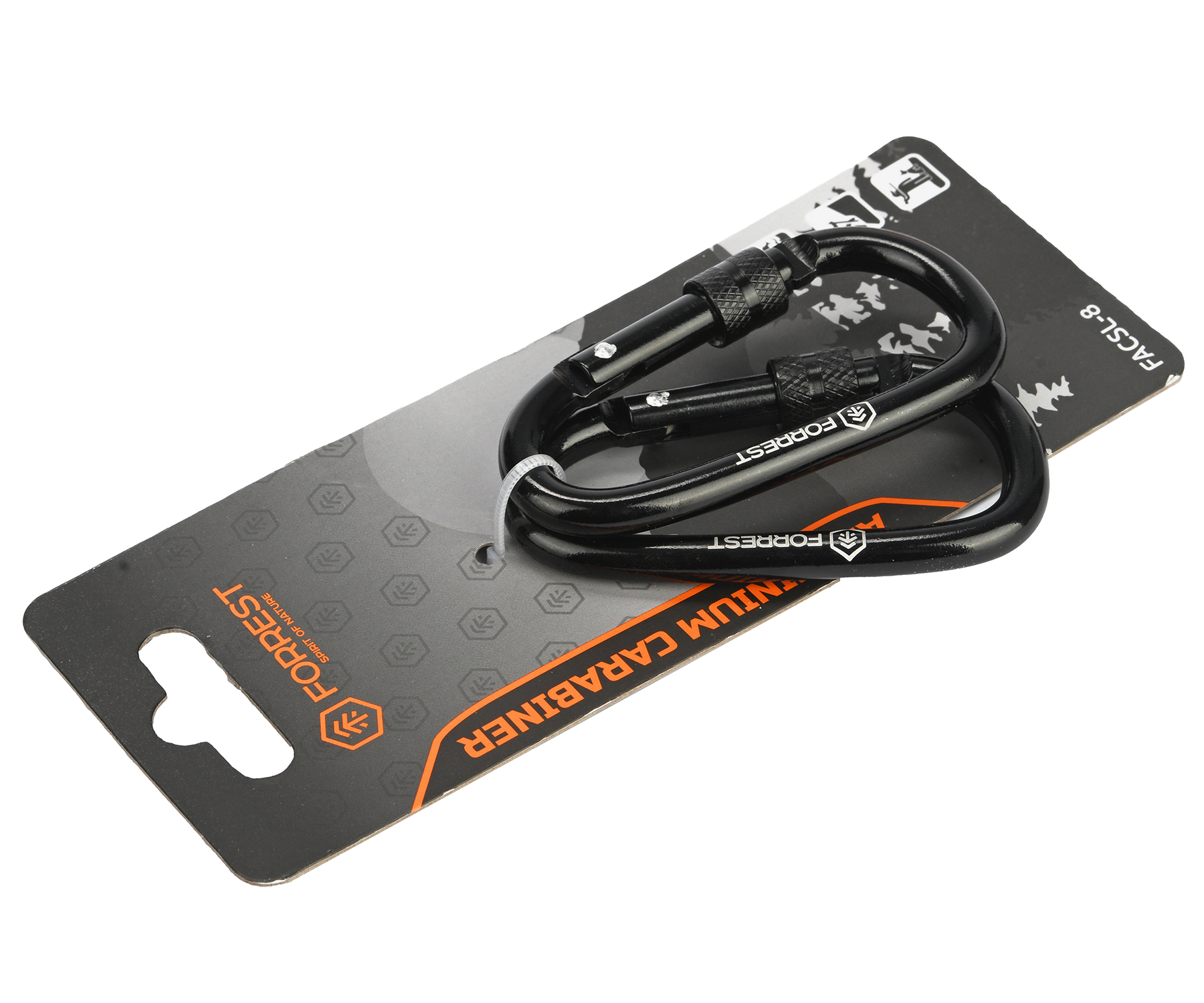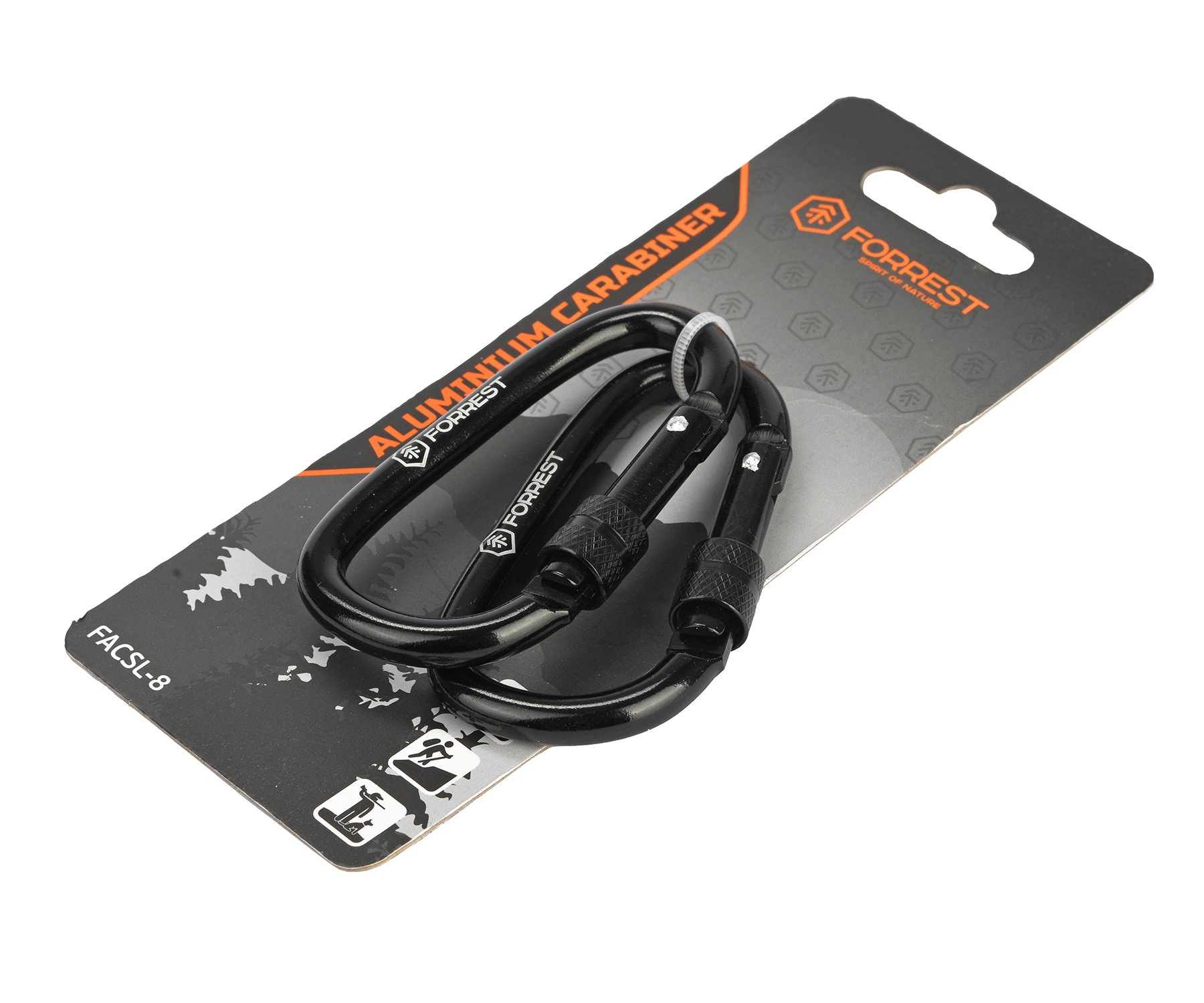 Forrest Aluminium Carabiner 8 см Screw-lock FACSL-8 – туристичний карабін, який виготовлено з анодованого алюмінію. Має різьбову систему фіксації. За своїх розмірів і малої ваги витримує досить великі навантаження. Стане у пригоді в походах, подорожах, на риболовлі для підвішування будь-чого, фіксації та кріплення необхідних речей, інвентарю. У повсякденному житті Forrest Aluminium Carabiner Screw-lock можна використовувати для зберігання, підвішування потрібних предметів до рюкзака, сумки або поясу (ключів, пляшки з водою тощо). Увага! Карабін Aluminium Carabiner 8 cm Screw-lock від Forrest не є професійним обладнанням для альпінізму або інших екстремальних видів спорту.