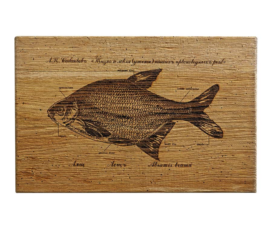 Картина триптих «Лящ» із серії «Сабанєєв» – стильний та неординарний подарунок для захопленого рибалки! Триптих «Лящ» – картина із трьох частин, яка виготовляється майстрами та художниками компанії FishPoint вручну. Вони ретельно підбирають відповідний фрагмент дуба і додатково старіють його за унікальною технологією, завдяки чому картина виглядає як раритет. На центральній частині картини випалюється риба та наносяться її назви трьома мовами: українською, старослов'янською та латиною. На бічних частинах триптиха наносяться найцікавіші витримки про даного представника іхтіофауни з оригінальної книги Л. П. Сабанєєва «Життя та лов прісноводних риб». Як результат – маємо унікальний витвір мистецтва на рибальську тематику, який порадує кожного рибака!