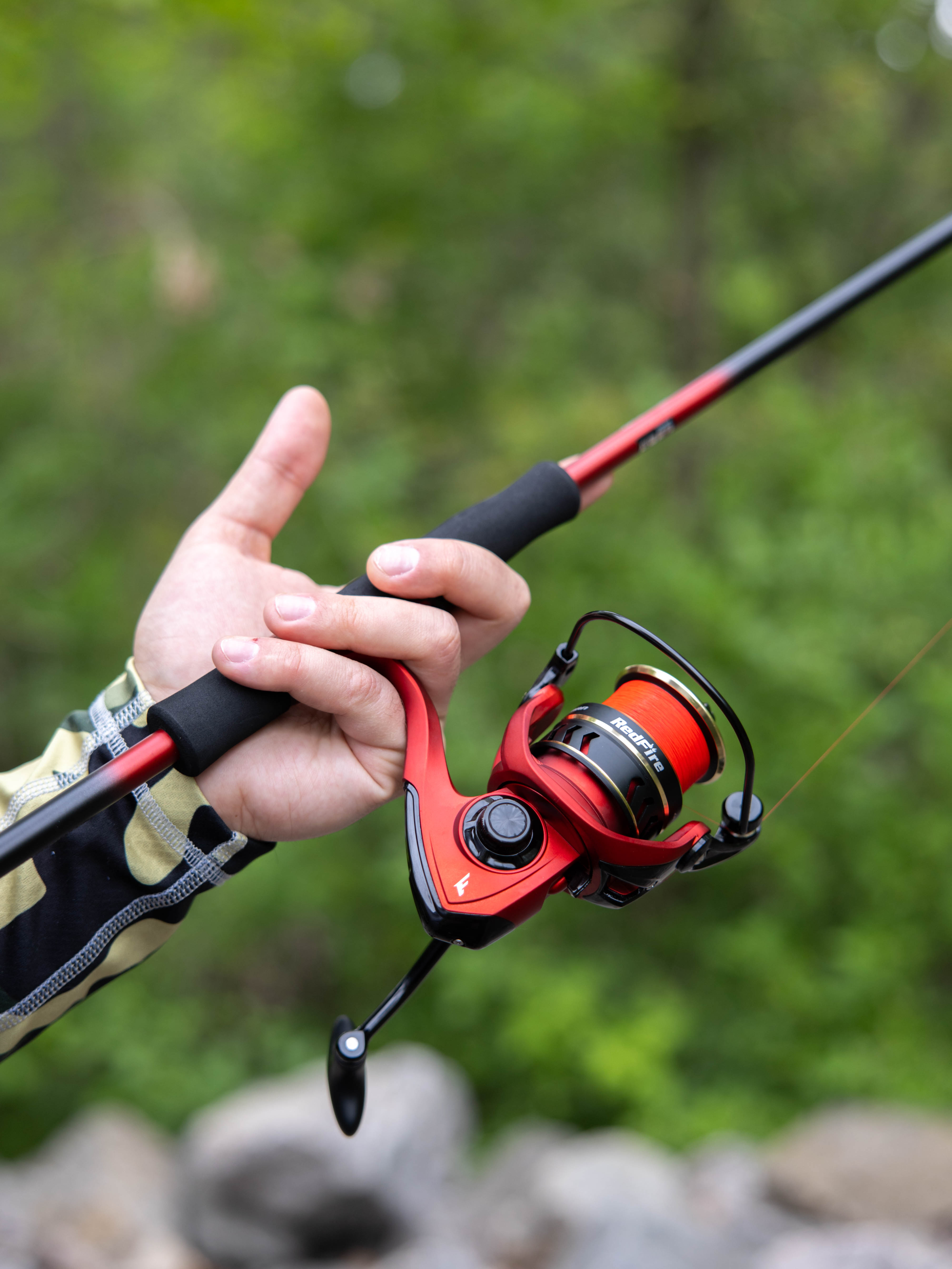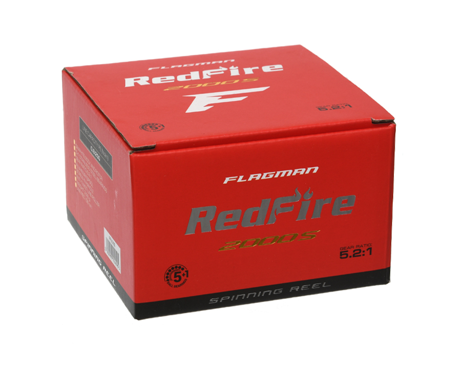 Flagman RedFire – новинка сезону, серія універсальних спінінгових котушок для широкого кола риболовів, що вирізняються стильним дизайном і чудовими технічними характеристиками. У прекрасно збалансованому механізмі, розміщеному в жорсткому графітовому корпусі, використано 5 кулькових і 1 роликовий підшипник із нержавіючої сталі, завдяки чому котушка Flagman RedFire має плавний хід і гарні тягові характеристики. Усі котушки серії оснащені низькопрофільними алюмінієвими шпулями з конічним буртиком, мають ролик жилковкладача із системою Anti-Twist та оптимізовані під використання сучасних шнурів і жилок. Вдосконалений кулісний механізм забезпечує якісне укладання жилки, що підвищує дальність і точність закидань. На окрему увагу заслуговує система Screw-in-handle, за якої алюмінієва ручка котушки вкручується безпосередньо в головну шестерню. Це позитивно позначається на відчутті збитості механізму та загальній надійності. Кноб добре лягає в руку й має зручну форму. Плавне регулювання фрикціону дає змогу максимально точно встановити необхідне гальмівне зусилля. Серія котушок Flagman RedFire має чотири моделі в різних розмірах із яскравим дизайном. Якщо RedFire 2000S – це чудовий вибір для ловлі на легкі приманки, то модель RedFire 4000S впорається як із ривковими анімаціями воблерів big minnow, так і з джиговими приманками вагою до 40 г. RedFire – це котушки, які мають краще технічне оснащення та характеристики, ніж переважна більшість конкурентів у даній ціновій категорії, а їхній стильний дизайн одразу привертає увагу та підтверджує заслужене звання «Яскравий лідер сегмента».