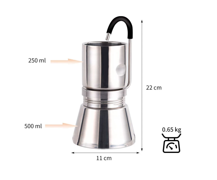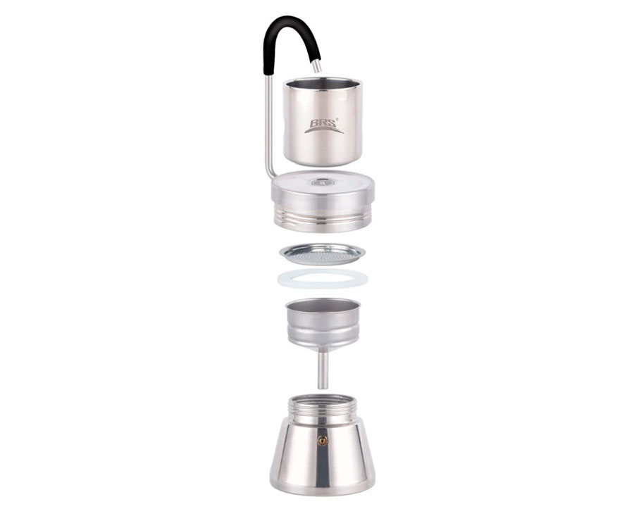 Кемпінгова кавоварка BRS-TC05 — ефективний та довговічний помічник у приготуванні кави як удома, так і в польових умовах. Об'єм моделі дорівнює 250 + 500 мілілітрам. Розміри становлять 110 х 220 міліметрів, а вага — 650 грамів, що дозволяє брати аксесуар із собою, куди б Ви не прямували. Конструкція виготовлена з нержавіючої сталі 304. Комплект включає фірмову сумку для зручного транспортування.