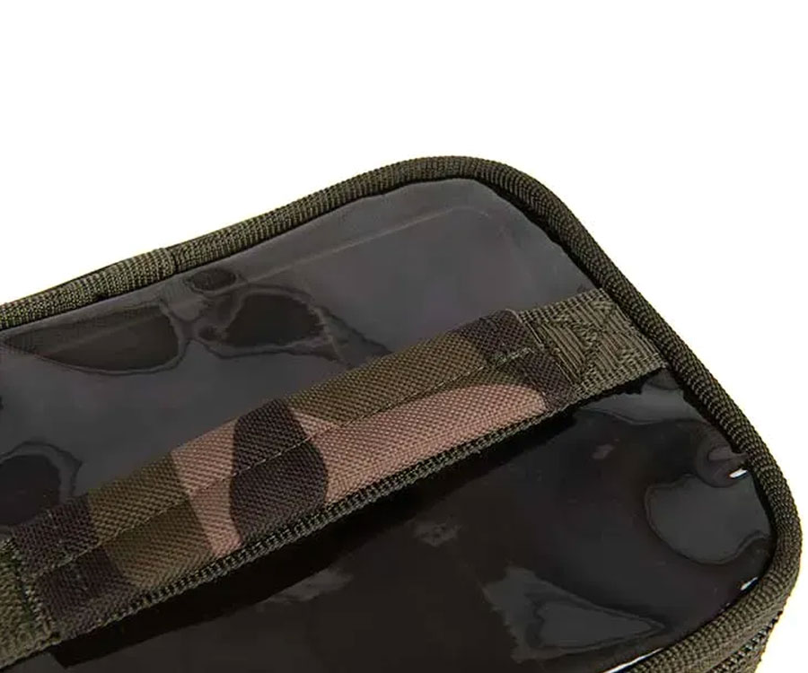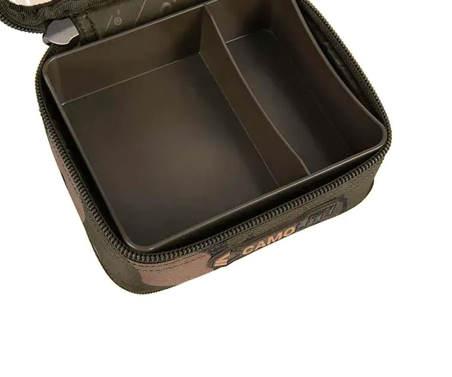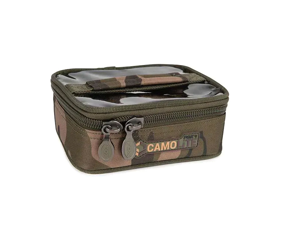 Сумки для грузил та біт Fox Camolite з жорсткими вставками, міцний, зносостійкий та водонепроникний чохол на блискавці з 500D, що ідеально підходить для грузил. З жорсткою внутрішньою вставкою та сітчастою кишенею на блискавці, що ідеально підходить для затискачів та вертлюгів для свинців тощо. Невелика міцна сумка для аксесуарів, призначена для зберігання повідків та інших необхідних предметів спорядження: