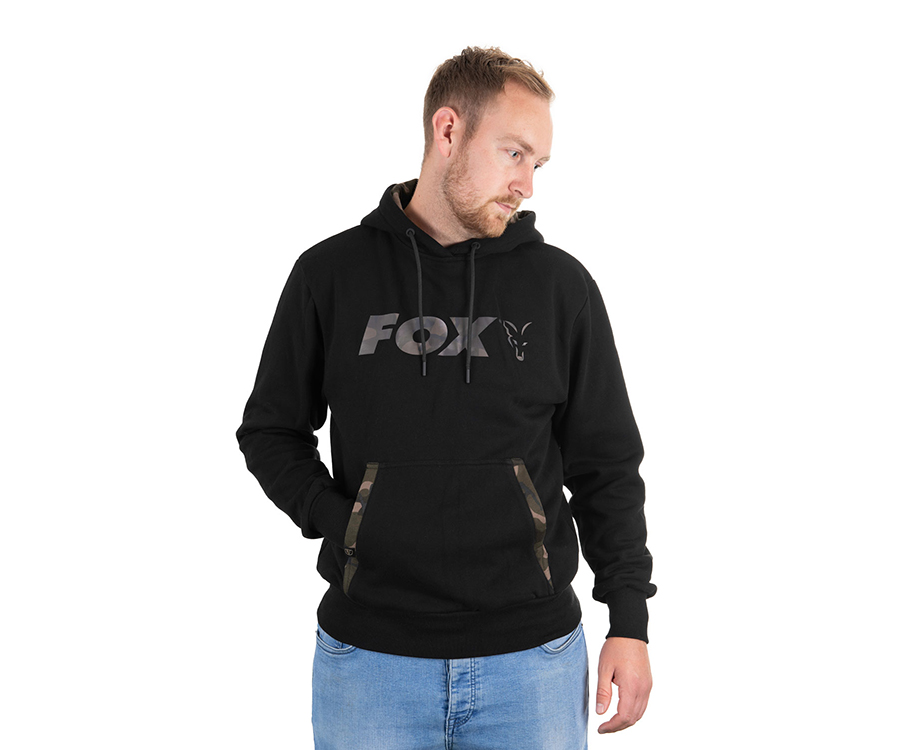 Fox Black/Camo Hoody – високоякісна толстовка з капюшоном і кишенею типу кенгуру. Має зручний крій і практичний чорний колір із камуфляжними оздоблювальними елементами.