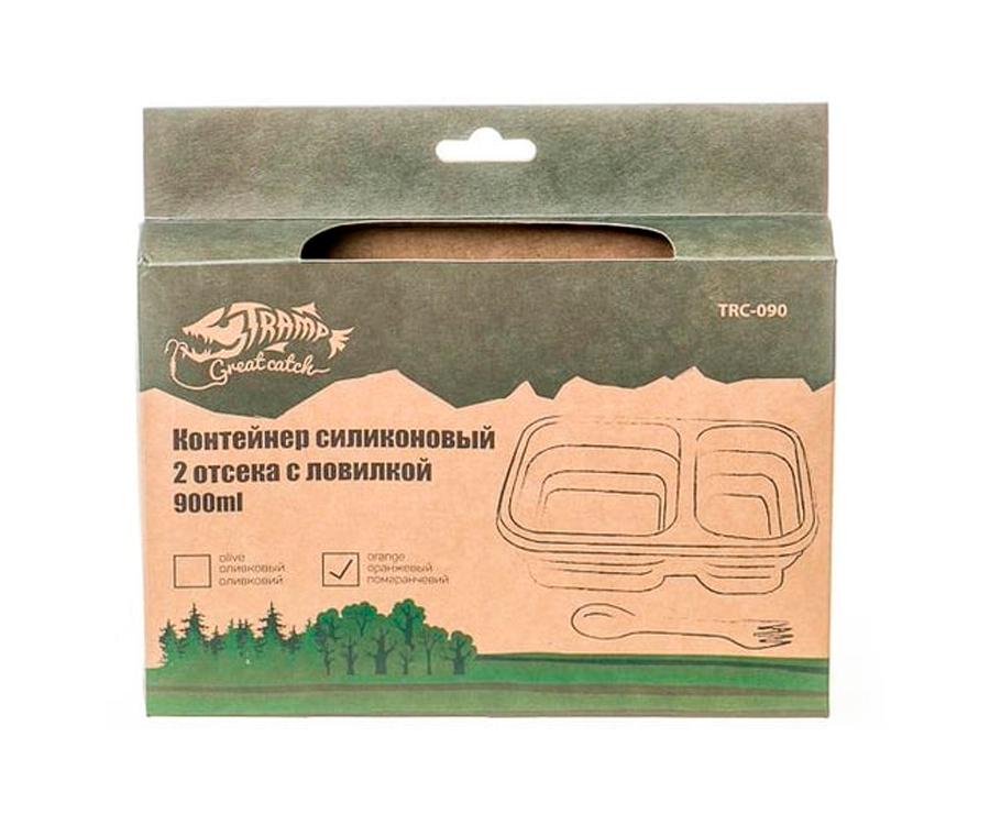 Складаний силіконовий контейнер для їжі Tramp, який відмінно підійде для подорожей та відпочинку на природі, має 2 окремі відсіки з харчового силікону об'ємом 900 мл та може використовуватися як похідна миска, ланчбокс. Контейнер укомплектований столовим приладом, який є поєднанням ложки та вилки та зберігається у кришці контейнера.