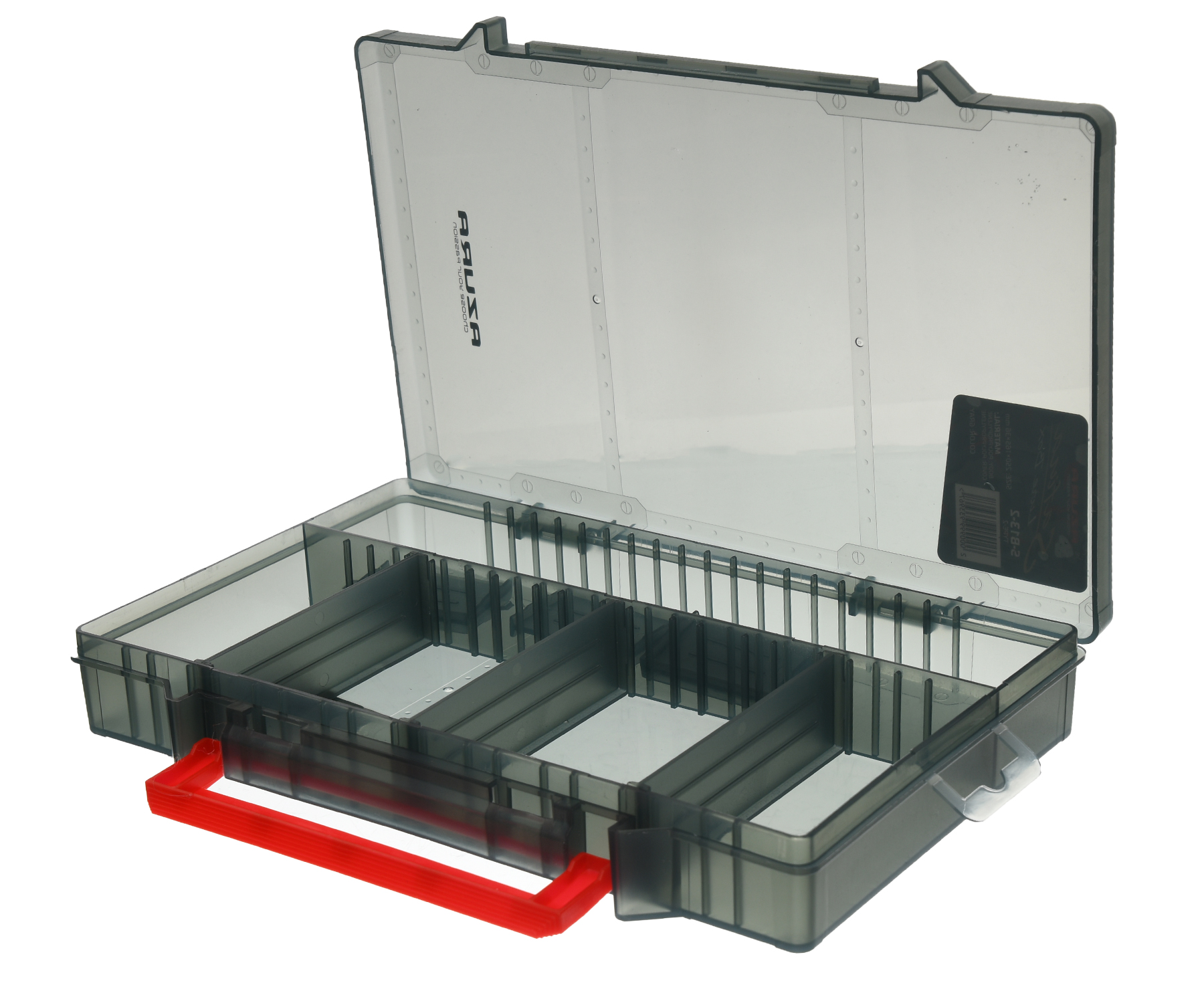 У доволі місткої моделей Azura Safina Lure Box #13 S-B13-2 основне відділення розбито на 2 поздовжні відсіки (більший і менший), які, своєю чергою, діляться знімними перегородками на секції. Така конструкція коробки Azura Safina Lure Box дає змогу довільно обрати розмір і кількість секцій, установивши знімні перегородки в потрібних місцях, аби в такий спосіб оптимально сформувавши внутрішній простір виробу під ваші потреби.