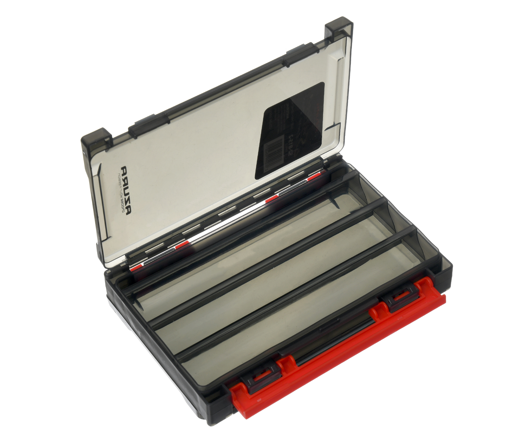 У моделі Azura Safina Lure Box #15 S2-B15-2 із кожного боку є по 3 повздовжніх відділення. Перегородки розташовані зигзагоподібно, а кожне відділення має V-подібний профіль, що дає змогу максимально раціонально використовувати внутрішній простір коробки для зберігання і транспортування приманок. Кришки Azura Safina Lure Box #15 закріплені шарнірно та мають міцні надійні защібки. Розміри: 195x130x40 мм.