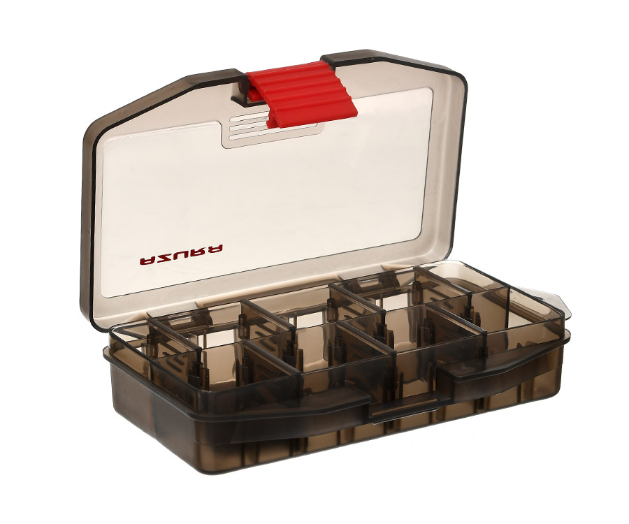 Azura Safina Tacle Box Black #1 – серія високоякісних пластикових коробок зі знімними перегородками, які розташовано у 2 ряди. Їх призначено для транспортування та зберігання невеликих риболовних приманок, елементів оснащення та аксесуарів. Коробки для снастей Azura Safina Tacle Box виконано в стильному дизайні Azura, виготовлено з прозорого стійкого до подряпин затемненого пластику та оснащено надійними защібками. Завдяки продуманій конструкції та змінним розмірам відділень, коробки Azura Safina Tacle Box Black #1 дають змогу компактно розмістити необхідну риболову кількість снастей і приманок. Коробки Safina Tacle Box Black #1 міцні й легкі, мають компактні розміри, їх зручно переносити в наплічній сумці або рюкзаку. Доступні в розмірах S та M.