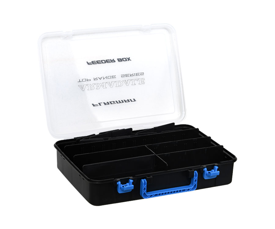 Коробка фідерна Flagman Armadale Feeder Tackle Box 390x280x85 мм – жорсткий однорівневий пластиковий кейс, який ідеально підходить для безпечного зберігання і транспортування різноманітних фідерних аксесуарів: від пакунків із гачками, бобін із повідцями й жилкою до грузил, фідерних годівниць тощо. Кейс Flagman Armadale Feeder Tackle Box виготовлено з міцного високоякісного пластику, оснащено напівпрозорою кришкою з двома замками. Він надійно захищає вміст від проникнення бруду та пилу. Armadale Feeder Tackle Box має кілька основних відділень зі знімними перегородками, що дають змогу впорядкувати рибальські аксесуари й оптимально використовувати внутрішній простір кейса. Для зручності транспортування передбачено складану пластикову ручку.