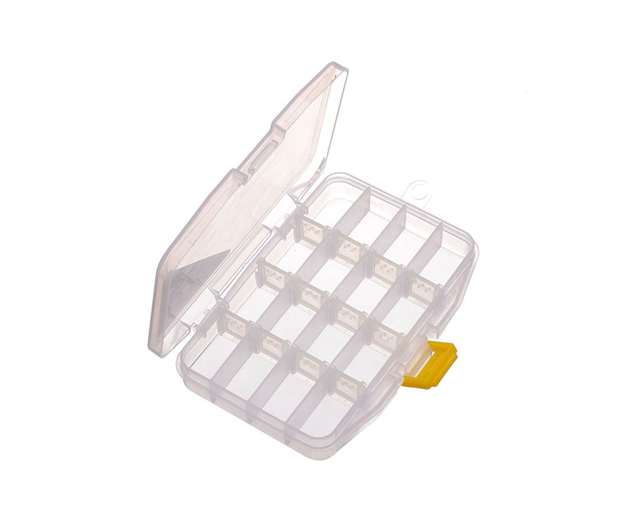 Коробка із знімними перегородками. Має три основні відділення, які діляться знімними перегородками на менші. Безліч можливих позицій установки перегородок допомагає сформувати відділення, виходячи з розмірів приманок. Кришка і клямка закріплені шарнірно, що збільшує їхній ресурс. Пластик коробки міцний та довговічний.